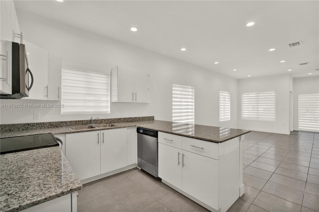 Recently Built Townhome with an Open Concept Layout Living Room, Dining Room and Kitchen; Great Space for Entertaining! Powder Room/Bathroom for your Guests on the 1st Floor with Brand New Washer/Dryer Conveniently located inside the unit. 2nd Floor has 3 Bedrooms 2 Bathrooms. All Impact Windows and Doors. Porcelain Tile Throughout. Kitchen with Quartz Countertops and Stainless Steel Appliances. Everything is new. Custom Zebra Blinds throughout the entire Townhome. Recently added surrounding Fencing privatizing front and back yard. Property has had upgrades. Must See!