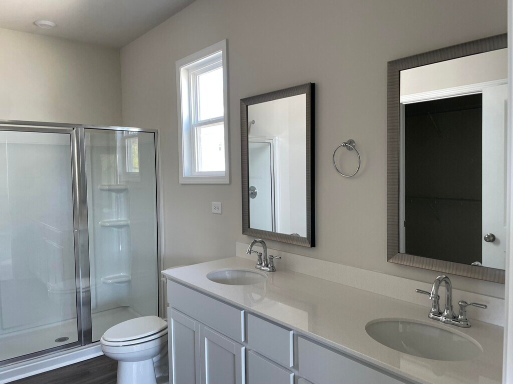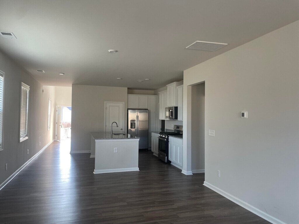 New construction in a great neighborhood and location. Open floor plan with primary bedroom on first floor. Patio doors open to private back yard. Kitchen has hard surface countertops,center island,pantry and stainless steel appliances. Second story has den or family room,3 bedrooms and a full bath. Walk in closets and double vanity sinks. Garage enters into laundry room. Community Pool in Subdivision.