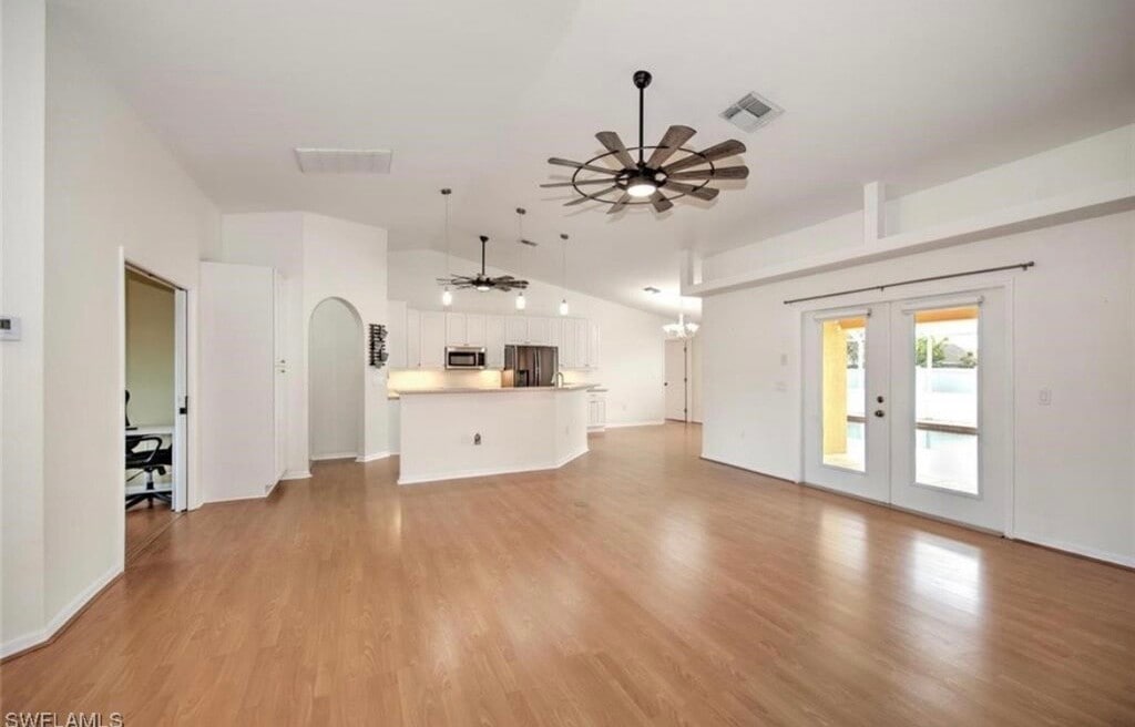 Sun-Soaked Southwest Cape Coral Pool Retreat Privately Owned: 3 bed + Den / 2 Bath, Full Solar, Fenced Pool Home, Lawn and Pool Services Included. $2800 a month with $2800 Deposit. No application fees, background check fee per adult applicant (nonrefundable). Screening and income verification required. Available now, lease terms 12 months. Tenant is responsible for utilities: water, electricity, internet. **This home is equipped with full solar, leading to low electricity bills. Welcome to your private slice of Florida paradise! This beautifully updated 3 bedroom + Den, 2 bath pool home offers 2170 sqft of bright, open living space designed for comfort, entertaining and everyday luxury. Step inside a modern kitchen with high-end stainless-steel appliances, Corian countertops, generous counter space with washer and dryer included. Outside, is a screened in pool cage with a large pool and lanai, surrounded by a fence for your privacy. This custom home offers two oversized primary suites—both with direct bathroom access—one of which shares a Jack-and-Jill bath with an adjacent bedroom. Newly renovated walk-in showers, plus a spacious den and an additional bedroom, provide flexible space for family or guests. The two-car garage has an extra-large room for storage- the wide driveway accommodates six vehicles. Located in the heart of Cape Coral, you will be central to schools, shopping, parks, and dining options. Contact Larry Buffey (owner) to see the property via text or call . Pets are accepted upon approval.
