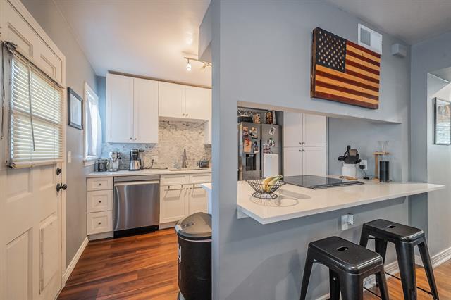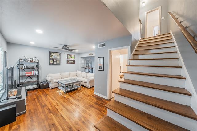 LOCATION, LOCATION, LOCATION! Welcome to Bordeaux Village — one of Dallas’ most desirable communities, ideally situated in the heart of the city. Enjoy unbeatable access to everything: just minutes from major freeways, Love Field Airport, the Medical District, Highland Park, Uptown, premier shopping, top-rated restaurants, and vibrant entertainment venues. Step inside this charming condo where a semi-open staircase welcomes you, along with beautifully preserved original hardwood floors that flow throughout the spacious living and dining areas. The updated downstairs powder bath adds convenience, while modern recessed lighting and a renovated kitchen featuring sleek quartz countertops offer style and function. Upstairs, you'll find a generously sized primary bedroom with two closets, a guest bedroom, a full bath, and washer-dryer hookups conveniently located in the hall closet. Original hardwood floors lie beneath the carpet upstairs, ready to be uncovered and restored. Energy-efficient windows throughout the unit bring in natural light while helping keep utility costs low. Enjoy your own private, decked patio with storage — perfect for relaxing or entertaining. This pet-friendly community is surrounded by mature trees, lush landscaping, and offers fantastic amenities including a pool, clubhouse, and acres of green space. Reserved covered parking is located just behind the unit for ultimate convenience. With updated electrical, thoughtful upgrades, and a prime location that puts the best of Dallas at your fingertips, this is truly a must-see opportunity! HOA dues are paid for by the landlord.