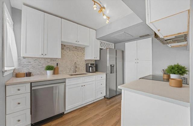 Welcome to this beautifully renovated condo where timeless charm meets modern convenience. This two-bedroom residence is designed to captivate from the moment you arrive. Step inside to a character-filled open staircase and original hardwood floors that flow seamlessly through the main living and dining areas. The updated kitchen shines with sleek quartz countertops, brand-new appliances, and thoughtful finishes ideal for everyday living and entertaining. A stylishly updated powder bath on the main level adds convenience, while recessed lighting throughout enhances the home’s bright, airy feel. Upstairs, the spacious primary bedroom features two closets and plush new carpeting. The secondary bedroom offers versatility—perfect for guests, a home office, or a wellness retreat. A discreet utility closet with laundry and additional storage adds functionality without sacrificing style. Energy-efficient windows throughout the home flood the space with natural light while helping maintain low utility costs. Enjoy outdoor living on your private decked patio, complete with extra storage. The community itself feels like a peaceful oasis, surrounded by mature trees and lush landscaping, with access to a sparkling pool, welcoming clubhouse, and expansive green spaces. Ideally located near Highland Park Village, Oak Lawn, Lovers Lane and Inwood for fantastic shopping and dining. This condo offers both tranquility and convenience. Reserved covered parking is located just steps from the unit. Schedule your private tour today and experience this exceptional condo for yourself.