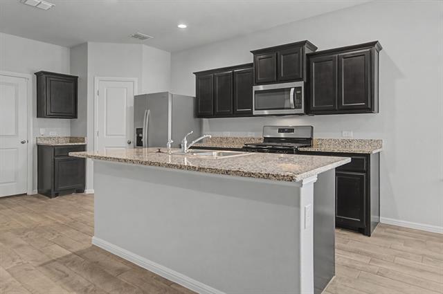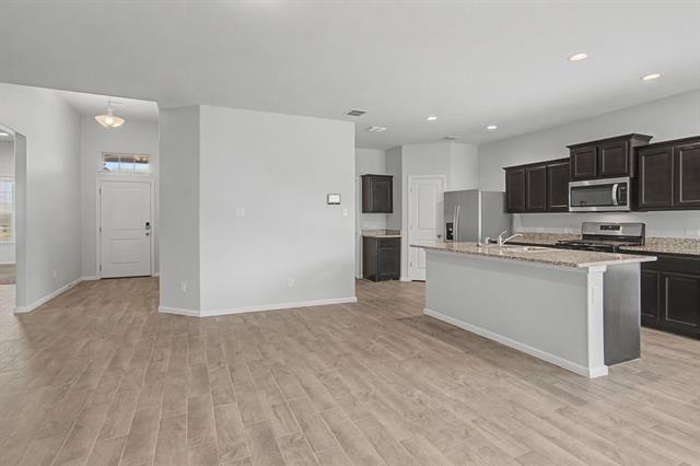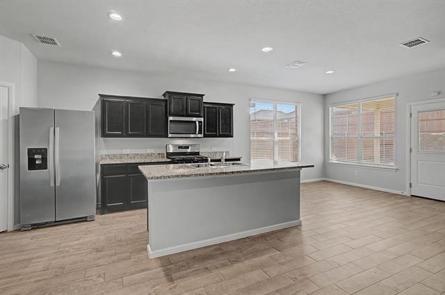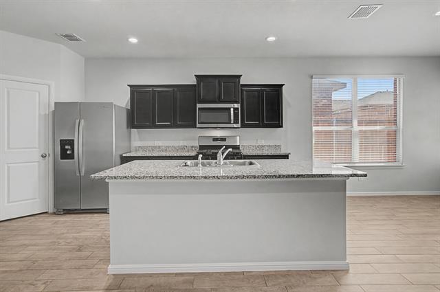 READY NOW. 4BR 2 BTH in EAGLE MOUNTAIN SAGINAW ISD. Washer & dryer and refrigerator are included. Modern open concept floorplan with spacious living room, dining area, large kitchen with granite countertops, large island, stainless steel appliances, gas range, built in microwave, and walk-in pantry. Split Bedroom plan with large primary bedroom, oversized shower, dual sink vanity, and a big walk-in closet. Tiled entry, halls and wet areas. Cultured marble vanities in both full baths, window blinds, partial gutters, situated on a large corner lot with sprinkler system and fully fenced backyard for privacy and more. Includes use of Community Pool, Splash Pad, Playground and Picnic area. Close proximity to I 35W and HWY 287. Minutes to DFW Airport, Eagle Mountain Lake & Downtown Fort Worth. Lots of shopping & entertainment nearby. Pets are a case-by-case basis.