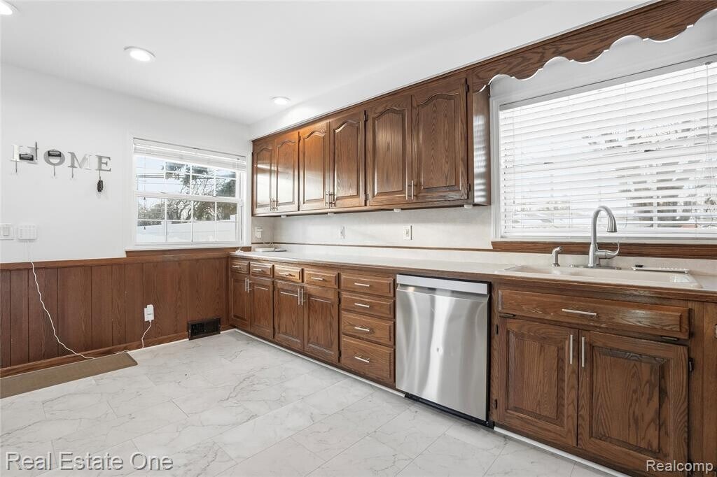 Well maintained 4 bedroom brick ranch offering over 1,300 sq ft plus a full basement in a highly desirable Dearborn Heights neighborhood. This home features refinished hardwood floors, fresh paint, generously sized bedrooms, and a functional layout ideal for everyday living. Large living room with dining area, spacious kitchen with table space and stainless steel appliances. Primary bedroom includes a private half bath. Updated full bath on the main level. The 4th bedroom is currently set up as a family room with a door-wall leading to the backyard. Situated on wide 70ft corner lot with a brick paver patio, gazebo, covered front porch, and a 2.5 car garage. Large basement offers excellent storage and additional living space potential. Located in the Crestwood School District and just minutes from Target, Kroger, Starbucks, T.J. Maxx, Greenland Market, dining and major expressways making commuting convenient. Immediate occupancy available.