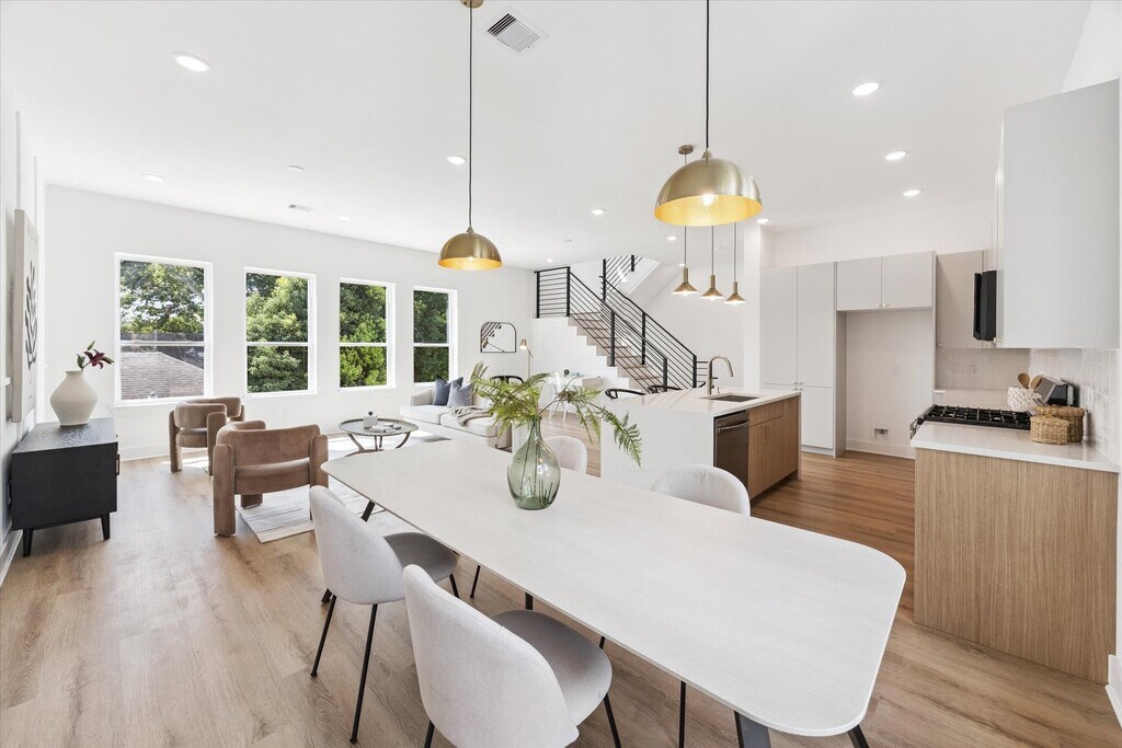 Experience contemporary modern living near Oak Forest and The Heights in this stylish three-story rental. This home features 3 bedrooms,each with a private full bath,plus a convenient half bath for guests. The main living area offers an open layout with great natural light,a spacious dining area,and a sleek kitchen with quartz counters,modern cabinetry,and a striking island. Durable wide-plank flooring extends through all levels—no carpet anywhere. The first-floor bedroom works well for guests or a home office. Upstairs,the third-floor primary bedroom suite includes a generous bath with a separate tub and shower,dual sinks,and a walk-in closet. A secondary suite and laundry area complete the top floor. Located in a small gated community with guest parking,this home offers comfort,modern finishes,and easy access to nearby dining,parks,and amenities. Perfect blend of comfort,style,and convenience. Welcome home! MLS# 31332547