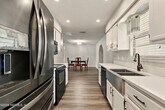 This property is also listed for sale. Welcome to this charming 3-bedroom,2-bath home featuring an open floor plan filled with natural sunlight. The home boasts luxury vinyl plank (LVP) flooring throughout,with no carpet,offering a modern and easy-to-maintain design. The kitchen is a standout,equipped with quartz countertops,stainless steel appliances,and plenty of cabinet space. Recessed lighting brightens the living areas,and ceiling fans are installed in all bedrooms for added comfort. The bathrooms have been partially updated,blending functionality and style. Additionally,the home offers a flex space,creatively converted from the exterior patio,currently used as a bedroom. This area is fully air-conditioned and heated,making it versatile for various uses MLS# 2103229