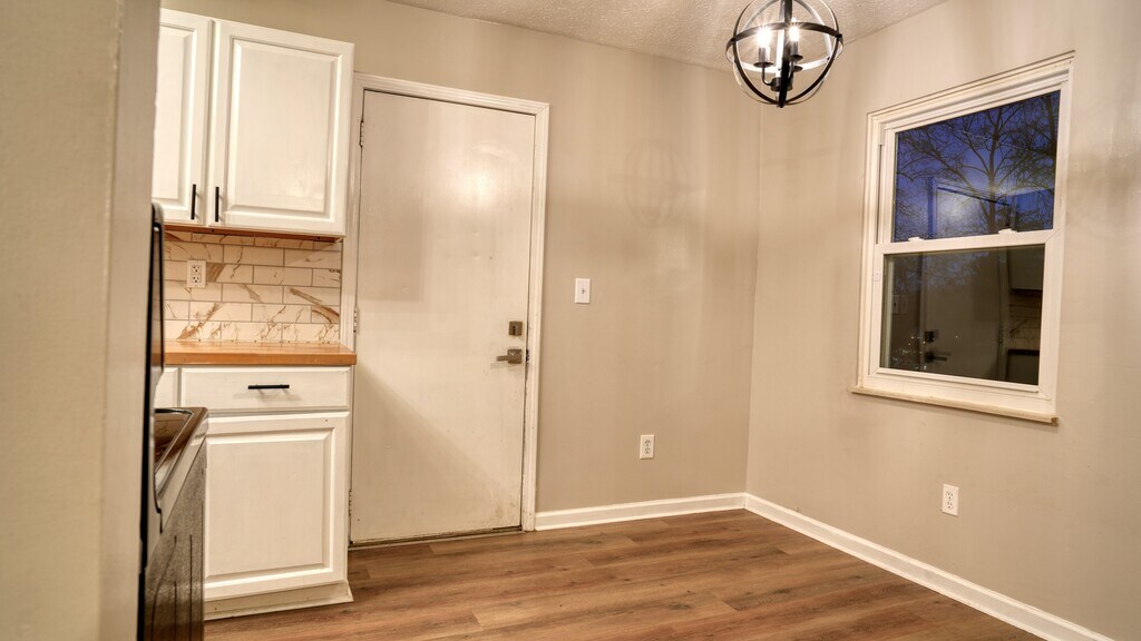 Welcome to this beautifully updated 3-bedroom, 1-bath top unit duplex featuring all main-level living and a 1-car garage downstairs and more parking included. Enjoy a spacious yard surrounded by nature, perfect for relaxing or entertaining. Inside, you'll find a bright open living area with new flooring throughout, a modern kitchen with butcher block countertops, stainless steel appliances, and a stylish backsplash. The bathroom features updated tile, a newer vanity, and contemporary fixtures, plus there's a convenient laundry room. Located in a peaceful area, yet just minutes from shopping, dining, and major highways. ?? Available now! Please message to schedule a private showing. ¡HABLO ESPAÑOL!