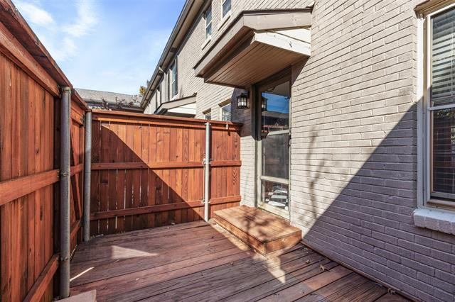 BELOVED BORDEAUX VILLAGE CONDO! Nestled in a charming community with open courtyards and mature trees, this beautifully maintained condo offers a peaceful retreat in the heart of the city. Just minutes from major thoroughfares, UTSW, SMU, and Love Field Airport, you'll also enjoy easy access to the vibrant dining and entertainment scenes of Uptown and Oak Lawn. This sparkling clean condo features gorgeous wood floors throughout (with tile in the kitchen), and a private fenced deck with a storage closet. Convenient street parking in front and an assigned carport space #139 in the back. Don't miss this fantastic opportunity!