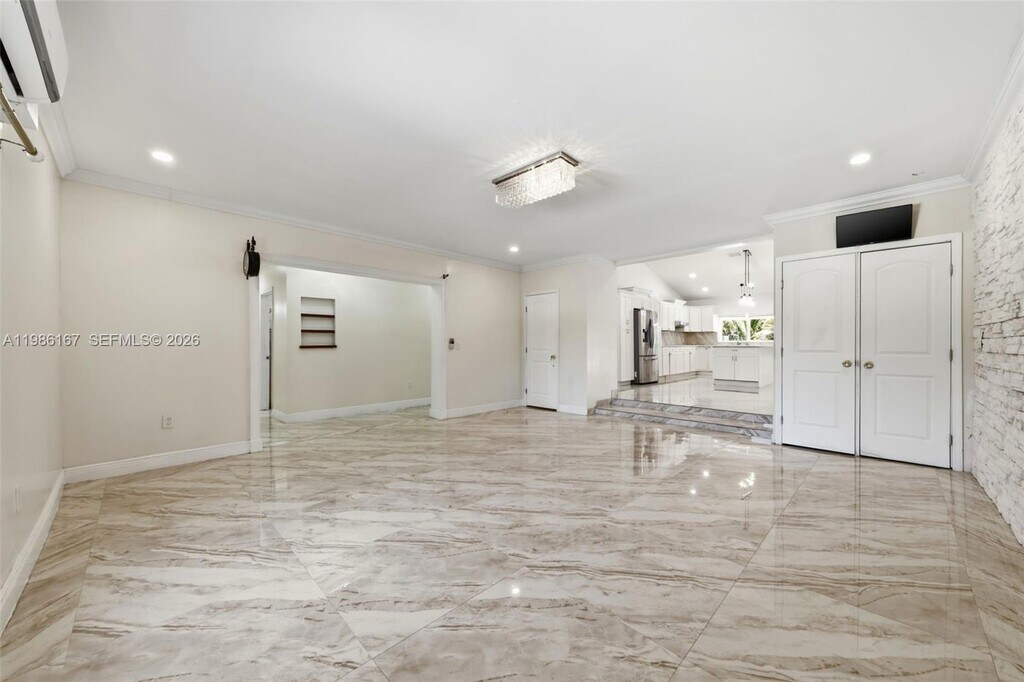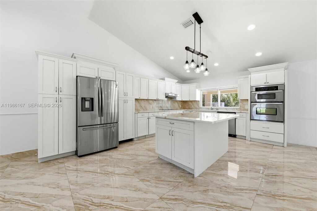 6-bedroom, 4.5-bath ranch in Parkland’s Pine Tree Estates with 3,583 sq ft and private pool. Features vaulted ceilings, wide-plank tile floors, open living, dining, and kitchen layout with wall-mounted fireplace and large glass doors. Kitchen includes center island, ample cabinetry, stainless steel appliances, and pendant lighting. Covered patio and pool create a private outdoor retreat. Two pets allowed. Near Publix, Heron Lakes shops, Pine Trails Park, and Sawgrass Expressway. MLS # A11986167