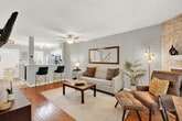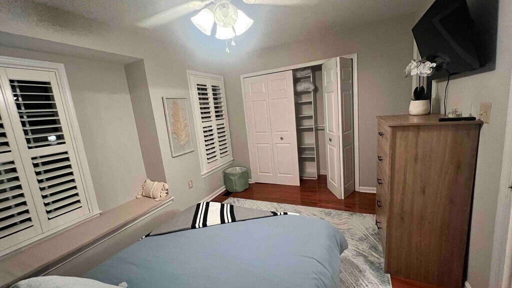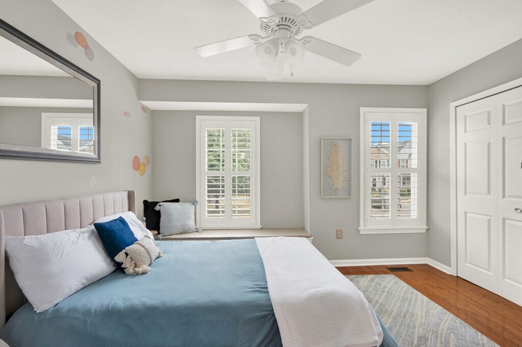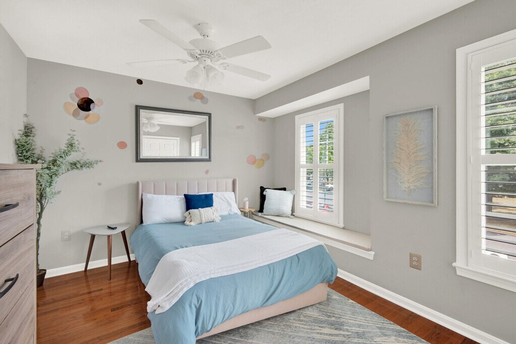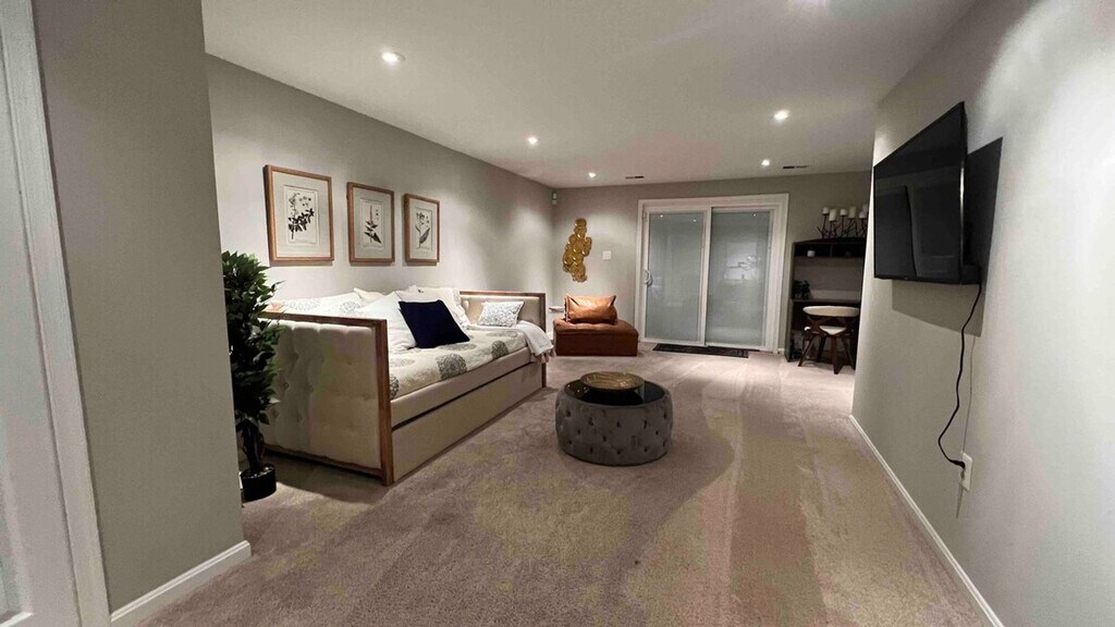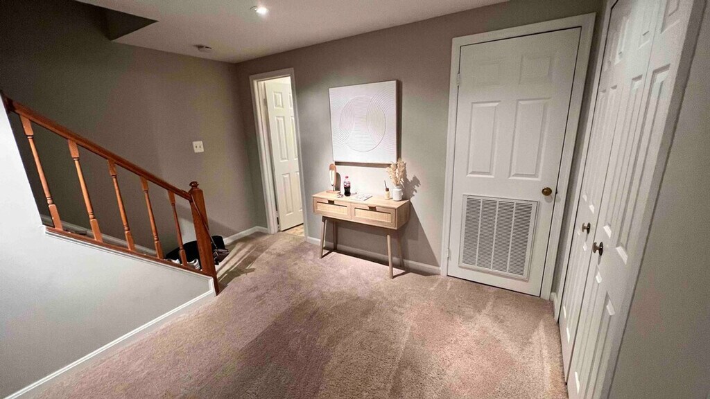 Feel at home in this stunning, recently renovated 3-story home. This elegant gem offers a modern yet warm living experience. The kitchen is equipped with new stainless steel appliances and a Wi-Fi enabled LG washer/dryer. The second floor opens up to an expansive living room with an open concept kitchen, complete with brand new appliances. A well-defined dining area is ideal for hosting gatherings, while a convenient guest bathroom ensures comfort for your visitors. The finished basement is a versatile haven that leads directly to the backyard and features an attached bathroom with a relaxing bathtub. There are two assigned parking spots directly in front of the home and plenty of guest parking in the neighborhood and along the street. Conveniently located close to Kingstown Shopping Center and Ft. Belvoir, this home offers easy commuting to Interstate 495 and Van Dorn/Huntington Metro. Step outside to your backyard oasis, where you'll find peach trees bearing fresh fruit and a serene forest located right behind the home, where miles of private trails await. There are 3 smart TVs available for use and the home is equipped with Wi-Fi enabled security doorbells, entry systems, and thermostat monitoring. Includes a thoughtfully furnished workspace in the basement. Top Floor Tranquility (Top Floor): Ascend to the top floor where serenity awaits. Two spacious bedrooms, each boasting its own private attached bathroom, offer you the ultimate in privacy and convenience. Open Concept Living (Main/First Floor): Need extra space for guests? Unfold the sleek sofa with a pull-out bed for a restful night's sleep. Versatile Basement Retreat(Downstairs Basement): A daybed with a pullout trundle provides a playful sleeping area for kids and young adults, making sleepovers a breeze. Outdoor Delights: Step outside into the enchanting backyard, perfect for soaking up the sun or hosting outdoor gatherings. Embrace the joys of nature right at your doorstep. A large fruit bearing tree covers your outdoor grill in shade, making this the perfect spot to have a family BBQ. Guests have complete and private access to the entire home, backyard and neighborhood forest. [SI]