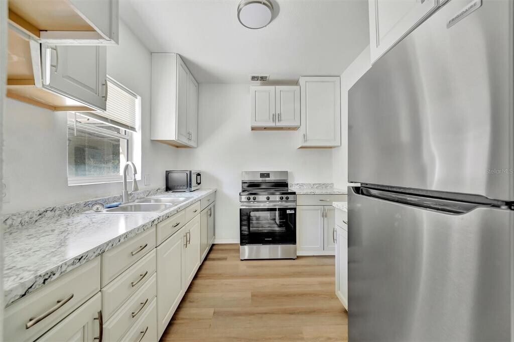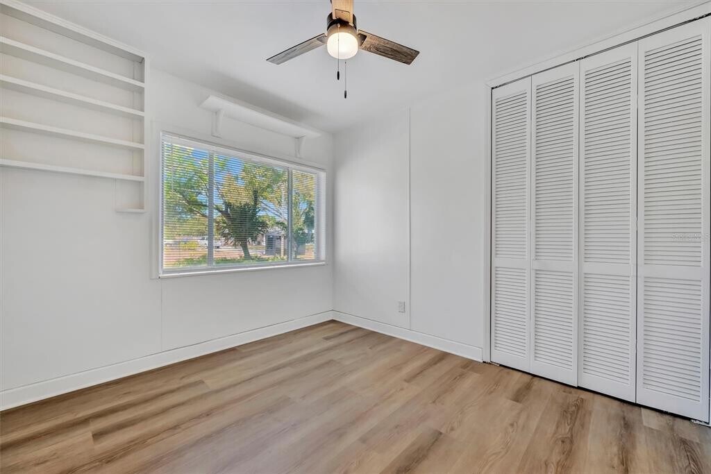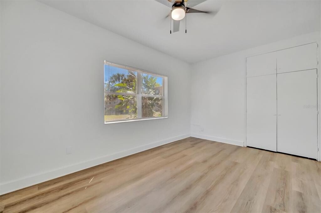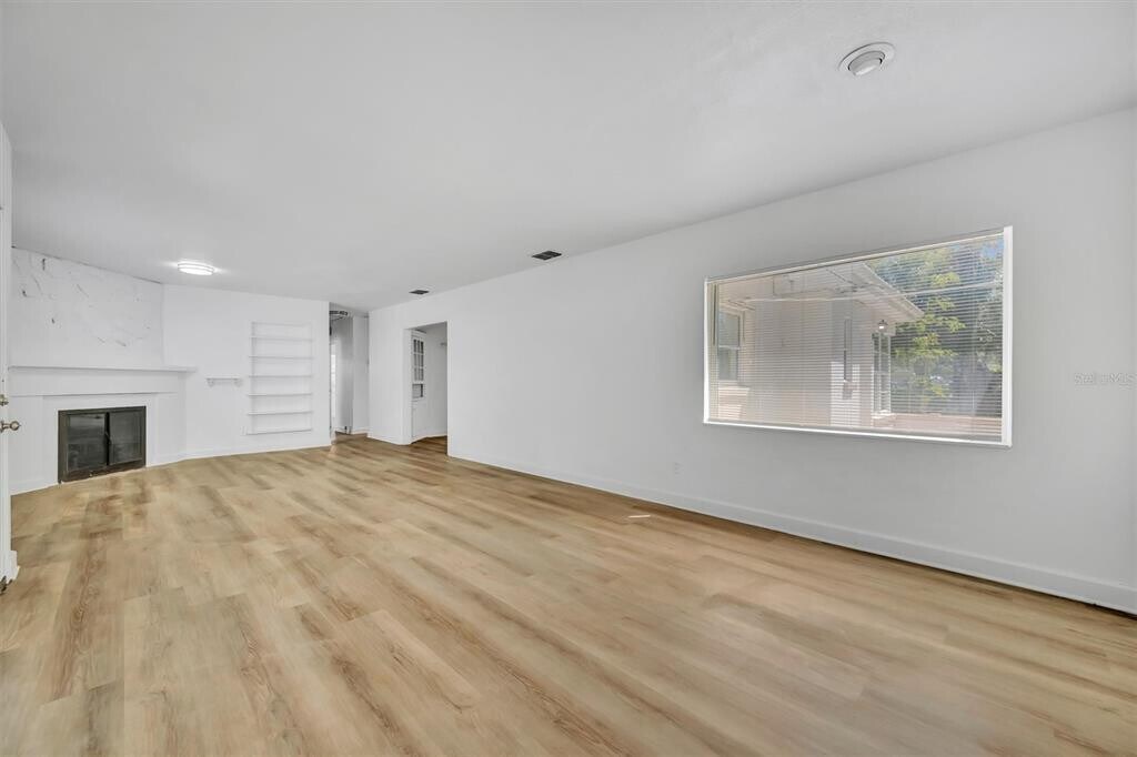 Step back in time with this charming 1947 home offering 3 bedrooms,1.5 baths,and 1,637 square feet,situated on a generous .34-acre lot in the Eagle Crest subdivision of St. Petersburg. Known for its picturesque,wide brick-lined streets,this neighborhood exudes character and timeless appeal. This home has been refreshed and thoughtfully updated with wood plank flooring,newer kitchen cabinetry,stainless steel appliances,quartz countertops,modern lighting,updated bathrooms,and central heat and air for year-round comfort. The front entry welcomes you into a spacious living and dining area filled with natural Florida sunlight streaming through surrounding windows. To the left,a hallway leads to three bedrooms and a full bath. Straight ahead,the dining room features charming built-in cabinetry and flows into a galley-style kitchen,which opens to a bright Florida room lined with windows—perfect for relaxing or entertaining. Step outside to the patio and enjoy the expansive backyard,ideal for grilling,gatherings,and outdoor living. A separate utility room with washer and dryer is conveniently located just off the patio. This unique property blends vintage charm with modern updates in one of St. Petersburg’s most beautiful and established neighborhoods—don’t miss your chance to call it home! Perfect location for beach lovers,approximately 4 miles to the white sandy beaches of Treasure Island packed with entertainment and restaurants. MLS# TB8493128