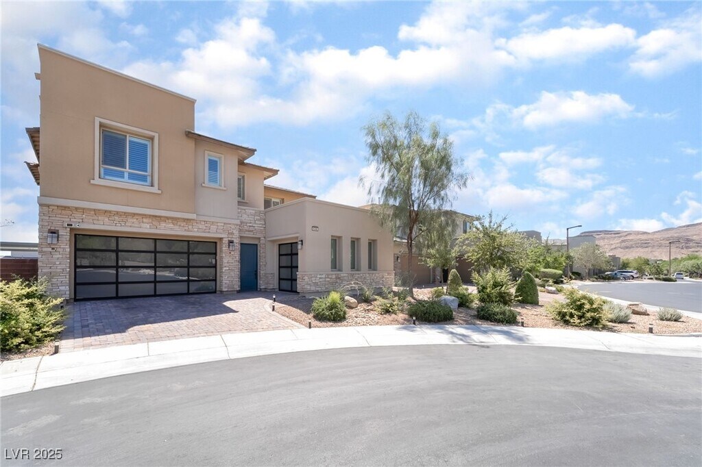 Step into modern elegance w/ this recently built South Summerlin home, perfectly situated just minutes from Downtown Summerlin. A welcoming courtyard sets the tone for stylish living, while the open floor plan features gourmet kitchen w/ large quartz island, top-of-the-line ss appliances, ample cabinetry, & home water softening & alkaline water system. Expansive sliding glass doors in the living areas bring in natural light & open to a stunning backyard retreat w/ modern pool, desert landscaping, firepit lounge, & built-in gazebo complete w/ an outdoor kitchen & grill area. Inside, downstairs bedroom w/ full bath offers flexibility, while upstairs boasts a spacious loft w/ built-in cabinetry & floating shelves, along w/ luxurious master w/ private balcony, custom walk-in closet w/ center island, & bath w/ stand-alone tub, walk-in shower, & dual sinks. Addt. bedrooms are generously sized w/ thoughtful design, completing this entertainer’s dream in one of Summerlin’s prime locations.