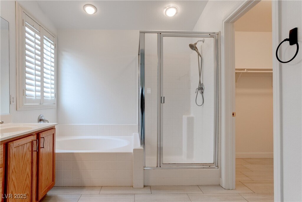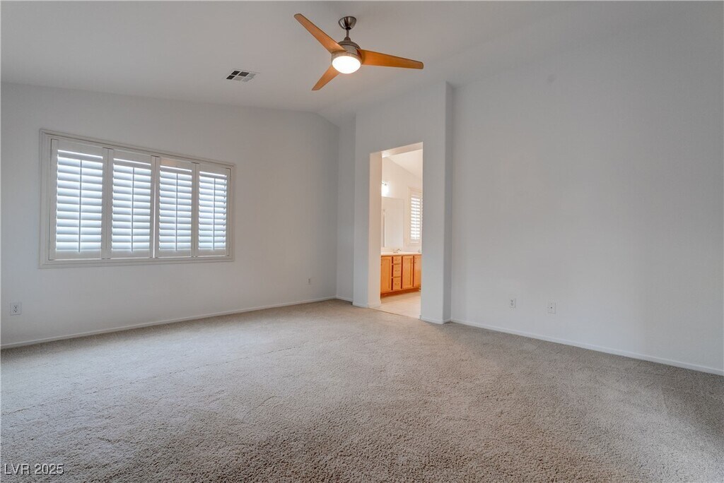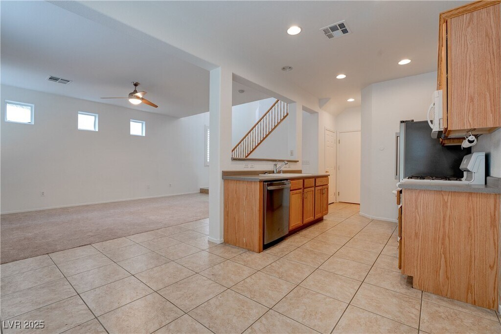 Welcome to this beautiful 3-bedroom, 3-bathroom home perfectly situated in a highly desirable Las Vegas community close to major shopping centers, top-rated restaurants, popular casinos and attractions, scenic parks and trails, and excellent schools K–12. This home combines comfort and convenience with an open-concept living and kitchen area, ideal for both relaxing and entertaining. The kitchen offers tile flooring, recessed lighting, stainless steel appliances, a walk-in pantry, and easy backyard access. Upstairs, the spacious primary suite features vaulted ceilings, a ceiling fan/light combo, and a private bath with dual sinks, a walk-in shower, soaking tub, and large walk-in closet. Step outside to enjoy your beautifully landscaped private backyard, perfect for quiet evenings or weekend gatherings. This move-in-ready home offers the ideal blend of modern comfort, location, and charm — a true Las Vegas gem that won’t last long!