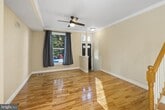 This bright and updated corner rowhome in Brewers Hill has private parking and its location has excellent walkability. It is convenient to so much on the SE side of the City including the Canton waterfront, Patterson Park, restaurants, shopping and entertainment. Only a short drive to either Johns Hopkins Hospital or Bayview. Also close to major highways and public transit. The main level has a living room, dining room, eat-in kitchen and mudroom. The upper level has two bedrooms, 1.5 baths and access to the deck. The walkout lower level has laundry and great unfinished storage/flex space. There is outdoor living space on the upstairs deck. This home is licensed with the City of Baltimore. Maximum of 4 occupants. Minimum monthly household income of twice the monthly rent. No smoking/vaping or pets. Trash/recycling service provided by the landlord. All other utilities, including water, are the responsibility of the tenant. One year minimum lease term. Online application with credit and background check. One month security deposit due at lease signing. Renter insurance required. Available now!