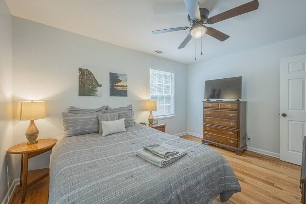 Welcome to Restful Riverside, a family-friendly haven nestled along the banks of the Oconee River. This homey 3-bedroom, 2-bathroom house offers a tranquil and idyllic living experience with updated finishes and views of the river. Feel at home as you explore the spacious deck, firepit, and outdoor dining area, perfect for entertaining and enjoying nature's beauty. Step inside to a warm and inviting living room, complete with a Roku TV for all your favorite channels and streaming services. The kitchen is a chef's delight, featuring an induction range, stainless steel appliances, ample storage space, and a convenient eating area. An extra room triples as a playroom, office space, or bedroom with a pull-down futon. The master bedroom serves as a tranquil sanctuary with a queen bed adjustable by remote and an attached en-suite bathroom. The other two bedrooms consist of a queen bed and a double bed, sharing the hallway bathroom. Pets are welcome with a pet fee of $75. Please ensure to inform us in advance to secure authorization for bringing a pet. You are required to clean up after your pet, including waste, or additional charges may apply. Conveniently located near amenities and recreational activities, this house offers the perfect balance of peaceful living and accessibility. Sanford Stadium is a quick 14-minute drive, and Downtown Athens is only 10 minutes away. A car is recommended, but a nearby bus stop, Uber, and Lyft provide additional transportation options. A door code will be provided the day before or morning of your reservation. A rental agreement must be signed before receiving check-in instructions. Failure to do so will result in cancellation without a refund. The induction stove heats magnetically and gets hot quickly, so use the real metal pots and pans provided and set it to 3 or 4. Pets are welcome with a fee and must be cleaned up after to avoid additional charges. Includes a desk and chair for a comfortable work-from-home set-up in the extra room, which can also serve as a playroom or bedroom.