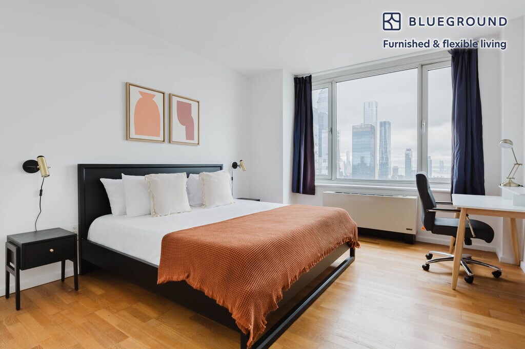 Discover the best of New York, with this two bedroom apartment in Hell's Kitchen with high floor views over the city. It’ll be easy to simply show up and start living in this furnished apartment with its fully equipped kitchen, living room, and our dedicated, on-the-ground support. (ID #NYC1475) The advertised rate of $4,370/month is the lowest available price, based on a 1 month(s) and 27 day(s) stay with a move-in date of January 23, 2026. If you’re looking for a 1-year stay, the rate is $7,750/month. Rates vary depending on the duration of stay, season, and other parameters. For exact pricing and additional pricing components, please visit our website and enter your desired move-in and move-out dates. The rate is applicable when billed upfront; it can be higher if billed in multiple payments. Brokers are welcome to reach out. Were you looking for an unfurnished lease? Try Blueground instead and upgrade from unfurnished to furnished living: - Furnished at rates comparable to unfurnished - No setup or furniture costs - save thousands - Move-in ready - save time, just bring your suitcase Designed with you in mind As with any Blueground apartment, you’ll find a thoughtfully designed space complete with beautiful furniture and a fully equipped kitchen in this two bedroom property. And, thanks to our superior quality mattresses, luxury linens, and towels, you can relax knowing you’ll always feel comfortably at home. When you’re ready for some fun, you can take in the New York vibes or bring the entertainment to you with the premium wireless speaker or smart TV. This apartment also offers in-apartment laundry. Sleeping arrangements King Bed, 70.8in/180cm King Bed, 70.8in/180cm Amenities Building amenities unique to this two bedroom apartment include an on-site: - Basketball Court - BBQ Area - Doorman - Dryer - Elevator - Washing machine - Media room - Pets allowed Arrival and ongoing support The entire apartment is yours to enjoy! Throughout your stay, you’ll have access to our Client Experience team through the Blueground App. You can schedule additional cleanings, submit maintenance requests, and view our neighborhood recommendations with just a few taps. We’ll share all details upon confirmation of your stay. Other things to note Building amenities may have an extra cost. This Blueground apartment has flexible lease options, allowing you to book it for one month, a year, or more. Pets are welcome, though weight limits and breed restrictions apply and may incur fees. Brokes CYOF. We take great pride in ensuring every photo displayed is shot in our own units with our actual furnishings. That said, we regularly refresh our decor and furniture arrangement, which may differ from what’s pictured. [SI]