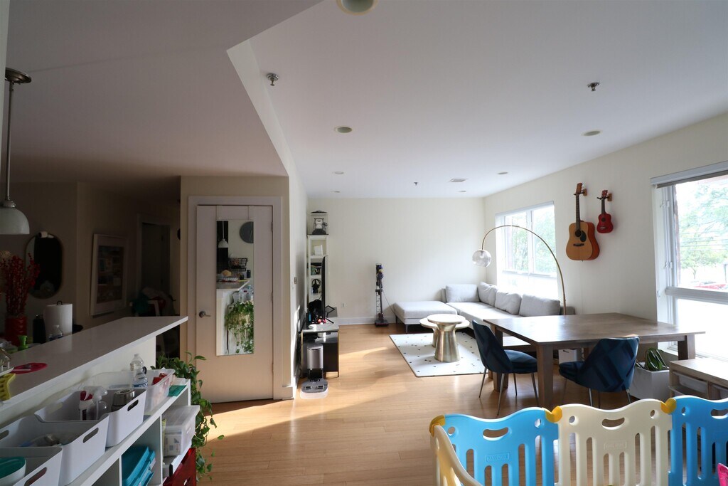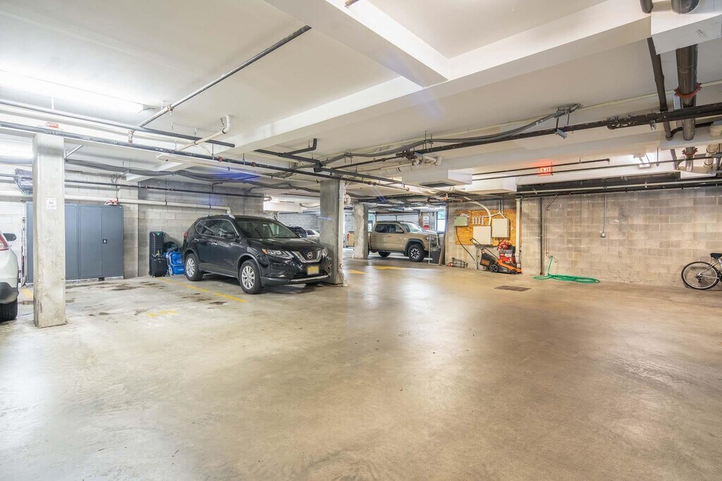 Welcome to Ariel Square. Come see this expansive two bedroom two bathroom condo with an oversize garage parking spot and 1100 sq. ft. of space to call home. The property has nine foot ceilings, an open layout with gorgeous bamboo flooring and a well appointed gourmet kitchen with custom dark wood cabinets, stainless steel appliances and quartz counter tops with breakfast bar. The building has some wonderful features such as a shared back yard with barbecue and fire pit, fitness room and elevator. All this and its close to Hudson Light Rail transportation.