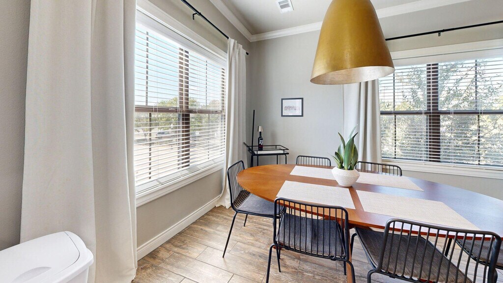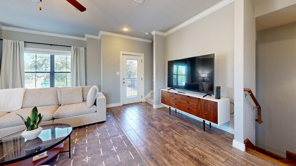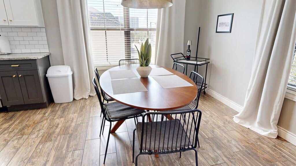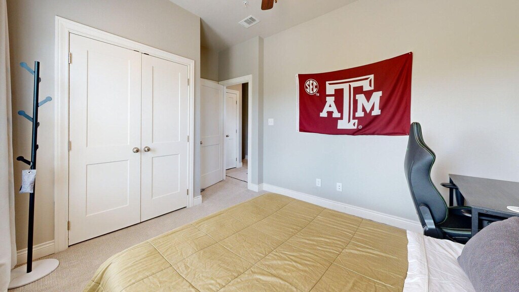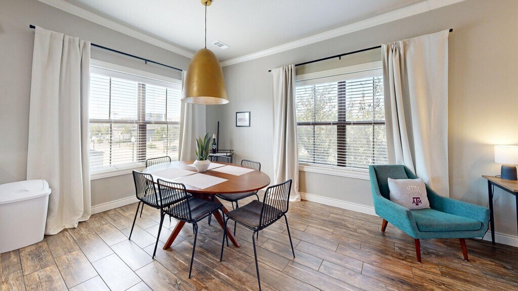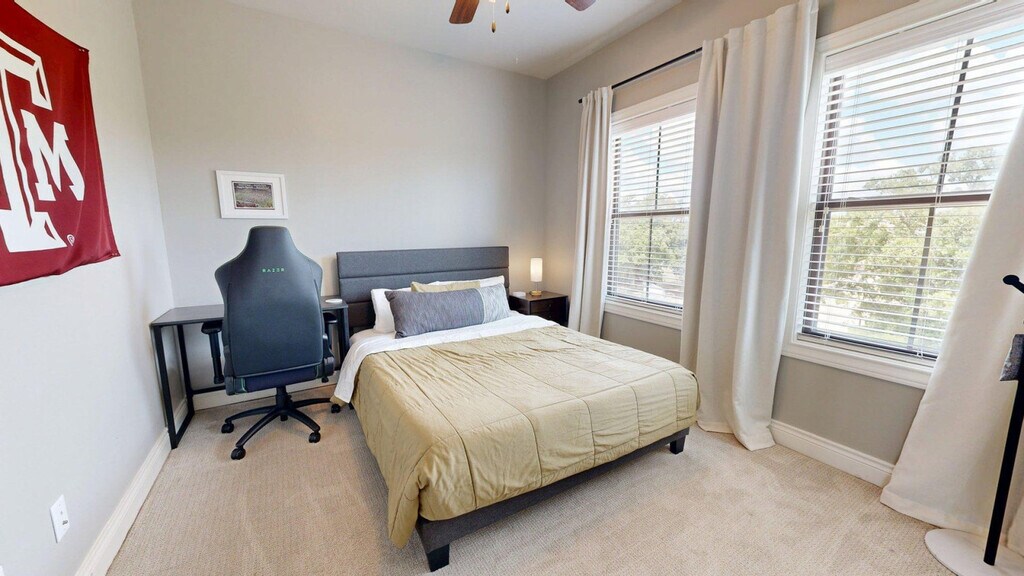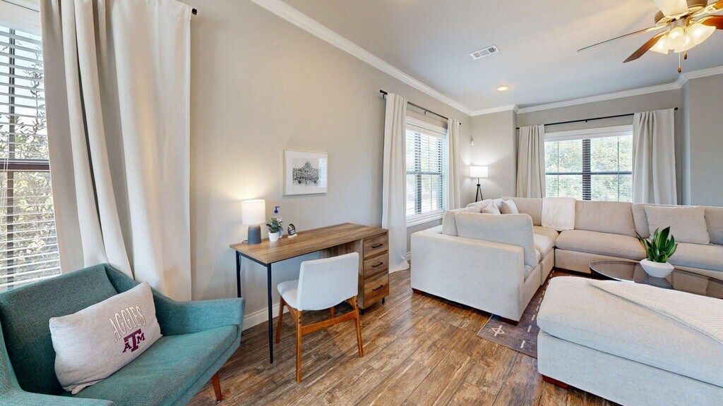 Welcome to Northgate Landing! Feel at home in this upscale 3-bedroom, 3-bath townhouse, just half a mile from Texas A&M University and a short walk to the legendary Northgate District. Perfect for families, game-day groups, or friends visiting College Station, this stylish townhouse blends modern comfort with unbeatable convenience. The townhouse features a fully equipped kitchen with modern appliances, a dedicated coffee bar, and everything you need for meals at home. There is also a large living area with plush seating and a flat-screen TV for post-game relaxation, and an in-unit washer and dryer for added convenience. Parking is available in the attached two-car garage and extra parking is available. Located just minutes from Kyle Field, this townhouse is surrounded by Northgate’s dining, nightlife, and history. The Dixie Chicken is a 5-minute walk away, and Messina Hof Winery is 15 minutes away. Guests must be 25 years or older to reserve the property. Smoking is not allowed in or on the property, and if evidence of smoking is detected, $400 will be retained to deodorize the home. Do not turn the thermostat below 69 during the summer as the unit could freeze, and the guest will be charged the cost to repair the heating/cooling system. When leaving in the summer season, turn the thermostat up to 80 degrees. When leaving in the winter season, turn the thermostat down to 60 degrees. People other than those accounted for in the booking agreement may not stay overnight in the property. If unauthorized guests are found to have stayed, a fee of $300 will be retained plus $25 per person. Pets are not allowed at Northgate Landing, and if a pet is found on the property, a pet fee will be charged and the booking may be terminated. If the cleaning crew finds that the property has been left excessively dirty, you will be billed for the additional cleaning time at a rate of $50 per hour. No trash or other items may be left on the property or outside the front door. All trash must be bagged when placed in a dumpster, or there will be a $20 charge. The property may have one or more actively recording cameras overlooking the entrance, driveway, and backyard areas, which record audio and video. All devices are on the exterior of the property. [SI]