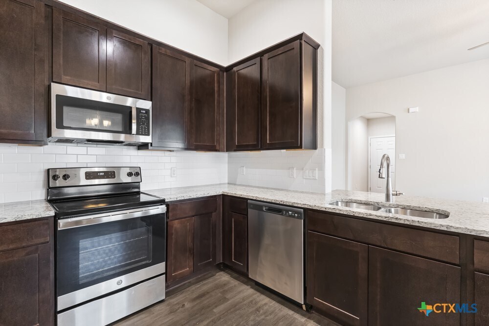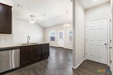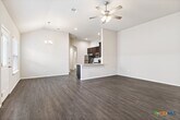 Step inside this beautifully designed 3-bedroom,2-bath duplex located in the highly desirable Jordan’s Creek Subdivision. This home offers an open,contemporary layout featuring impressive 11-foot ceilings in the living room and kitchen,creating a bright and spacious atmosphere. The open-concept kitchen is ideal for both entertaining and everyday living,featuring stainless steel appliances,refrigerator,breakfast bar,recessed lighting,granite countertops,abundant cabinet space,and a tasteful designer backsplash. The spacious primary suite showcases elegant tray ceilings,a large walk-in closet,and a private ensuite bathroom complete with a double vanity and walk-in shower. The primary bedroom also provides direct access to the covered back patio,creating the perfect space to relax and unwind. Additional highlights include faux wood window blinds throughout and ceiling fans in all bedrooms,the living room,and covered patio. Enjoy the fully fenced backyard with an irrigation system for easy lawn maintenance. Conveniently located approximately 30 minutes from San Antonio and 20 minutes from New Braunfels. This home is less than 6 miles from major employers and attractions including Caterpillar,Texas Lutheran University,and Downtown Seguin. Easy access to SH-130 Tollway provides a convenient commute to Austin,Tesla,and surrounding areas.