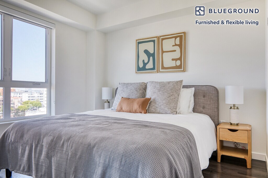 Feel at home wherever you choose to live with Blueground. You’ll love this stylish North Pine furnished one bedroom apartment with its modern decor, fully equipped kitchen, and cheery living room. Ideally located, you’re close to all the best that Long Beach has to offer! (ID #LAX526) The advertised rate of $2,690/month is the lowest available price, based on a 1 month(s) and 3 day(s) stay with a move-in date of December 3, 2028. If you’re looking for a 1-year stay, the rate is $2,880/month. Rates vary depending on the duration of stay, season, and other parameters. For exact pricing and additional pricing components, please visit our website and enter your desired move-in and move-out dates. The rate is applicable when billed upfront; it can be higher if billed in multiple payments. Brokers are welcome to reach out. Were you looking for an unfurnished lease? Try Blueground instead and upgrade from unfurnished to furnished living: - Furnished at rates comparable to unfurnished - No setup or furniture costs - save thousands - Move-in ready - save time, just bring your suitcase Designed with you in mind Thoughtfully designed with bespoke finishes, modern furnishings, and a fully equipped kitchen, you’ll enjoy that “I’m home” feeling with this Blueground apartment. Whether you’re lounging in your lovely living room streaming the latest and greatest entertainment on the smart TV or premium wireless speaker, or getting some well-earned rest on the superior quality mattress with luxury linens, you’ll fall in love with everything this North Pine apartment has to offer. This apartment also offers in-apartment laundry. Sleeping arrangements King Bed, 70.8in/180cm Amenities Building amenities unique to this one bedroom apartment include an on-site: - BBQ Area - Dryer - Elevator - Swimming pool - Washing machine - Lounge - Parking - Pets allowed Arrival and ongoing support The entire apartment is yours to enjoy! Throughout your stay, you’ll have access to our Client Experience team through the Blueground App. You can schedule additional cleanings, submit maintenance requests, and view our neighborhood recommendations with just a few taps. We’ll share all details upon confirmation of your stay. Other things to note Building amenities may have an extra cost. This Blueground apartment has flexible lease options, allowing you to book it for one month, a year, or more. Pets are welcome, though weight limits and breed restrictions apply and may incur fees. Parking is offered based on availability and is subject to a fee. We take great pride in ensuring every photo displayed is shot in our own units with our actual furnishings. That said, we regularly refresh our decor and furniture arrangement, which may differ from what’s pictured. [SI]