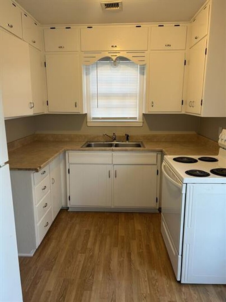 Charming home for rent at 636 Pinecrest, Wichita, just south of Kellogg on Pinecrest St. with easy access to anywhere you need to go! This 2 bedroom, 1 bath home features hardwood floors throughout. The living room is nice sized and has a faux fireplace with a mantle. Dining area is great for family meals with several large windows that bring in natural light. The kitchen is fully equipped with plenty of cabinets and countertop space. No more laundry mats needed when you move in here - this home has a nice utility room located just off of the kitchen. The back yard is nice and big and is partially fenced in. This home also has a one car garage. Call today before it's gone!