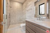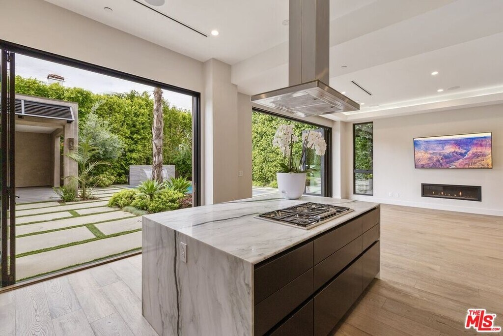 Sophisticated, gated modern residence in the highly sought-after Beverly Grove neighborhood. Masterfully blending architectural design with rich, warm tones throughout. This exceptional Control 4 smart home showcases a seamless open-concept floor plan enhanced by soaring ceilings, expansive bi-folding doors, hardwood floors, and two striking fireplaces that create an inviting yet refined ambiance. The gourmet chef's kitchen is beautifully appointed with premium Thermador appliances and an oversized island, flowing effortlessly into the family and entertaining spaces. Walls of glass open to a private backyard retreat featuring a resort-style pool and spa with waterfall, cabana lounge, and built-in BBQ an ideal setting for sophisticated indoor-outdoor living. The home offers four generously sized ensuite bedrooms, including a luxurious primary suite complete with its own fireplace, private balcony, custom walk-in closet, and an elegant spa-inspired bath featuring a soaking tub framed by a picturesque window. A rooftop entertainer's deck crowns the residence, offering sweeping panoramic views of Los Angeles and the iconic Hollywood Sign. Ideally located moments from LACMA, 3rd Street's celebrated dining, The Grove, and Beverly Center. Select images have been digitally staged. Offered unfurnished. MLS# 26654257