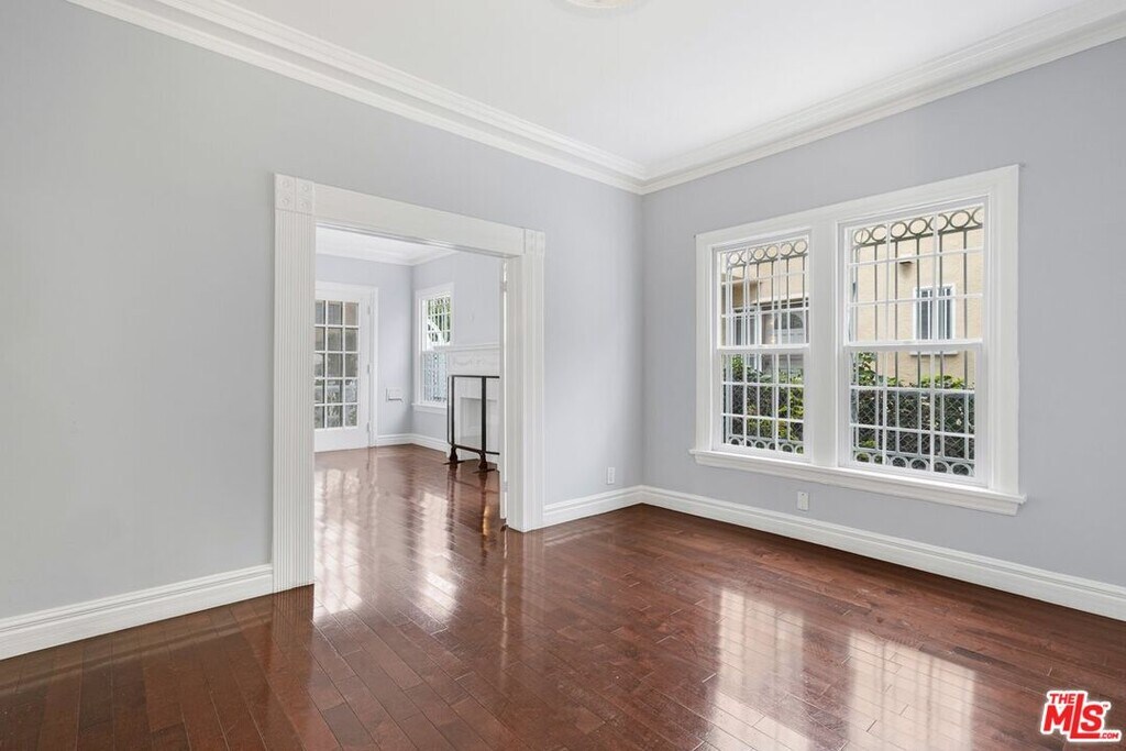 Step into timeless elegance and modern comfort in this beautifully maintained lower 2-bedroom, 1.5-bath residence, located in the highly desirable Beverly Grove neighborhood. This enchanting Colonial-style duplex exudes old-world charm and character, seamlessly blended with contemporary updates and an abundance of natural light that fills every corner of the home. The spacious living room welcomes you with its large picture windows, rich hardwood floors, and graceful architectural details that speak to the home's classic heritage. A formal dining room offers the perfect setting for entertaining. The updated kitchen is both functional and stylish, featuring granite countertops, ample cabinetry, updated appliances and a convenient laundry room with stacked washer/ dryer included. The remodeled main bathroom features a walk-in shower, while the primary bedroom includes a charming bay window and a private half bath for added convenience. Additional features include central heating and A/C, a lovely front patio perfect for morning coffee or evening relaxation, and one gated parking space for security and ease. Perfectly situated in one of Los Angeles' most sought-after areas, this home offers unbeatable proximity to The Grove, LACMA, the Beverly Center, Beverly Hills, and some of the city's best dining, shopping, and entertainment. Available now. MLS# 26649069