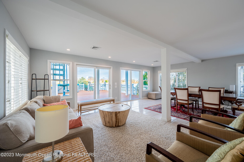 Totally Renovated WATERFRONT SUMMER RENTAL avail JUNE for $19,500 (all utilities & use of 4 beach badges included). Just 6 blocks to Sea Girt's pristine beaches & boardwalk,& only 5 blocks the PARKER HOUSE. This waterfront home has cool breezes and amazing water views! The spacious family room with wood burning fireplace & dining area lead to the large,elevated deck w/ a large hot tub,propane grill & a table set to enjoy outdoor lougning while taking in the water views & bird watching. Rental has a convenient enclosed outdoor showerg. Primary bedroom has an attached full bath & a wide balcony overlooking water. Second bedroom also have sliders that lead to the wide water view balcony. Plenty of off-street parking!