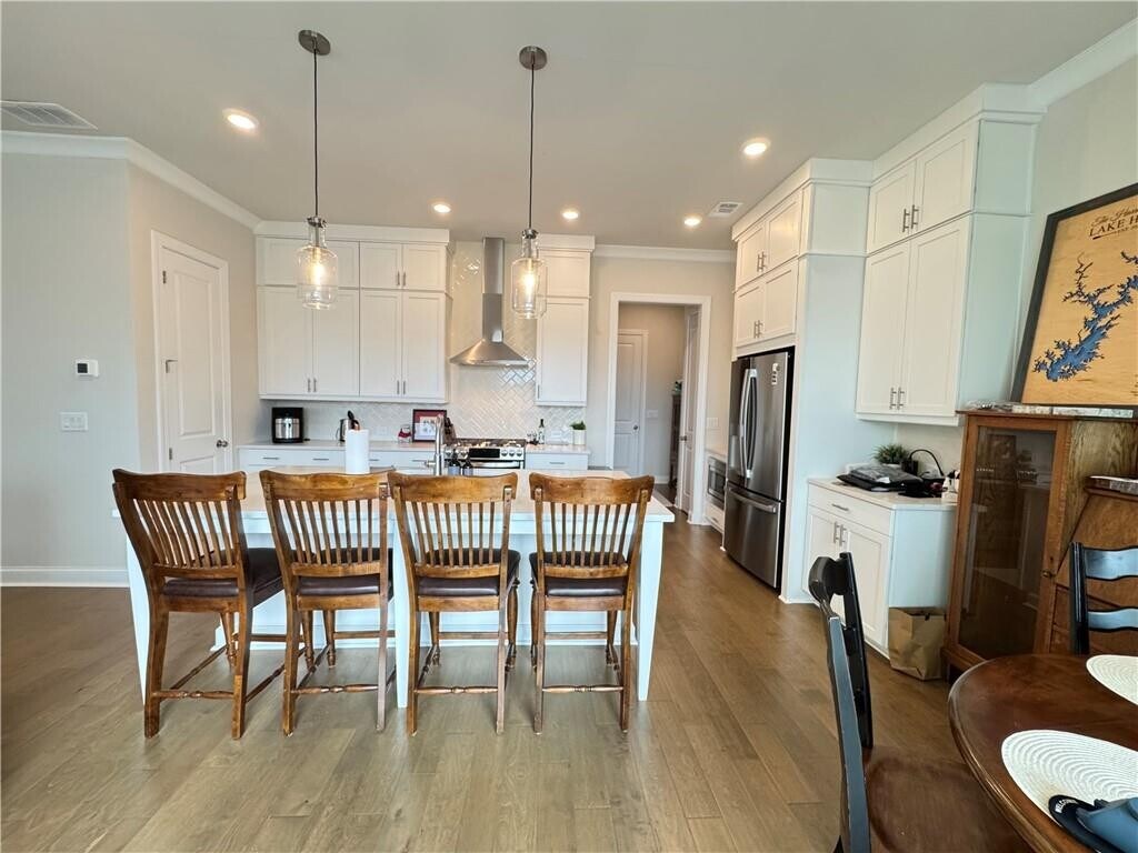 it's a rare opportunity! Welcome to a nearly new,one-year-old home in Palisades at Sawnee Village,where modern comfort meets everyday convenience. This thoughtfully designed residence offers three bedrooms,two and a half bathrooms,a two-car garage,and a spacious open layout filled with natural light. The main level flows effortlessly,centered around a stylish kitchen with white cabinetry,a chimney-style hood,and quartz countertops. A space that feels both elegant and functional for daily living. Upstairs,the primary suite provides a private retreat with a spa-inspired bathroom,while the additional bedrooms offer flexible space for family,guests,or hobbies. Hardwood flooring extends across the main level,the primary bedroom,the staircase,and the upstairs hallway. A loft on the second floor creates the perfect spot for a home office or quiet reading corner,and the laundry room includes built-in cabinets and a sink for added convenience. Step outside to the backyard and take in a peaceful mountain view! It's an ideal setting for morning coffee or unwinding after a long day. Beyond the home itself,the location adds an extra layer of appeal. Just minutes from Highway 400 and approximately four minutes from Exit 15,daily commuting is simple. 'Cumming City Center' (often considered the Avalon of the Cumming area) is only about two miles away and connected by a walkable path,making it easy to stroll out for coffee,dining,or evening entertainment. Historic downtown Cumming,nearby parks,and the Halcyon shopping and dining district are all a short drive away,while Lake Lanier offers endless outdoor recreation close to home. The property is located in a GATED COMMUNITY with amenities including a swimming pool and a playground. It is also served by a well-regarded school district,with Alliance Academy for Innovation located just minutes away. This home offers more than just a place to live,it invites you to experience a lifestyle where comfort,convenience,and everyday enjoyment come together. This is the kind of home you’ll fall in love with the moment you walk in. MLS ID 7703130