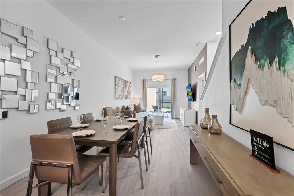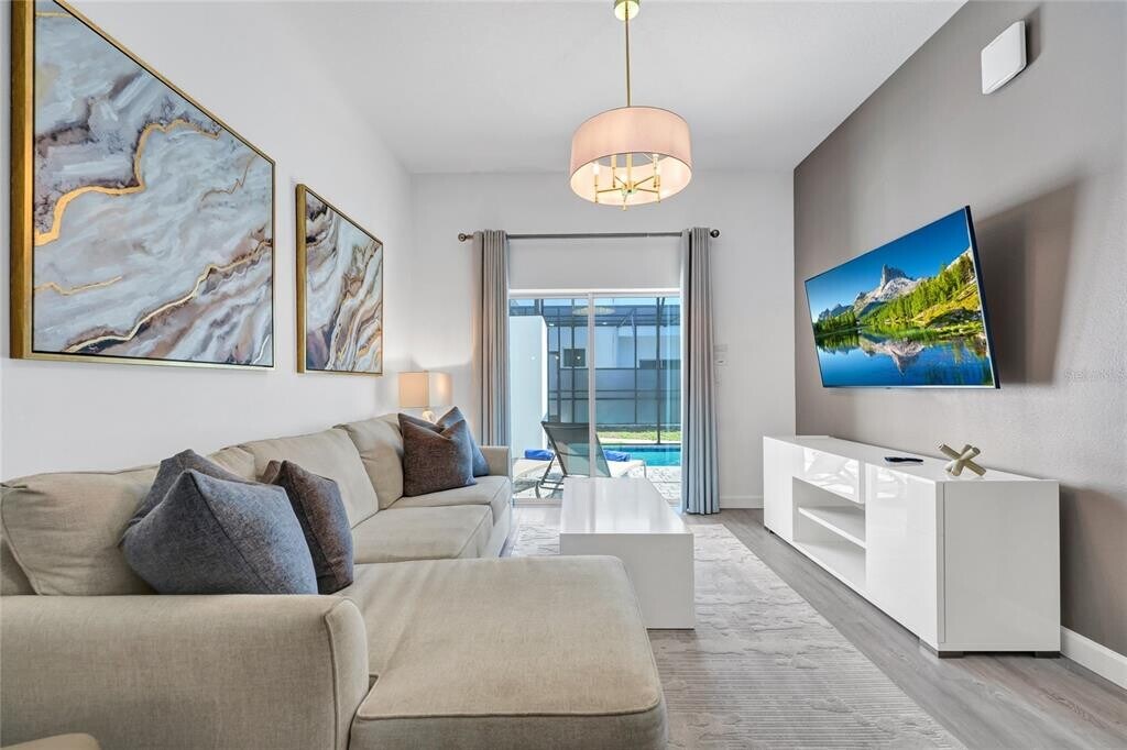 Welcome to your luxurious 4-bedroom,4-bathroom townhouse located just minutes from Disney Parks,perfect for your next family vacation or long-term rental. This beautifully furnished home features a private pool,fully equipped kitchen,pool table,and spacious living areas for ultimate comfort. Enjoy two master bedrooms with one conveniently located downstairs and another upstairs converted into an entertainment game room with pool table and sleeper sofa. The home includes smart TVs throughout,fast Wi-Fi,and a dedicated workspace for remote work needs. Comfortably sleeping up to 10 guests,you'll find flexible bedding options including king,queen,and twin beds. Additional conveniences include in-unit laundry,hotel-quality linens,and a family-friendly layout designed for relaxation and fun. Whether you're exploring Disney's magic or settling in for an extended stay,this turnkey home offers everything you need for an unforgettable experience. MLS# O6401914