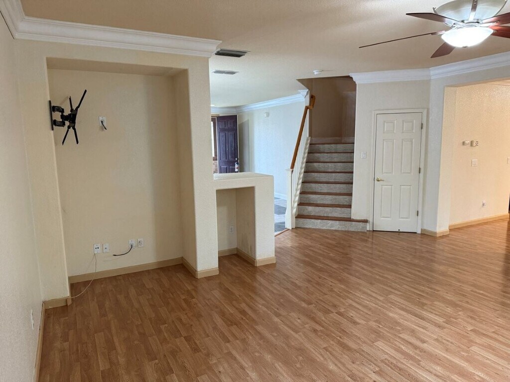 - 4 Bedroom 2.5 Bath 2783 Sq. Ft. 2 Story w/ Huge Loft - Extra Large Driveway w/ 2 Car Garage - Landscaped Front and Rear - Entry Features: Front Porch Area, Tall Front Door, Tile Entry, Recessed Light - Living Room Features: Tile Floors, Newer Paint, Dual Pane Windows, Crown Molding, Newer Switches and Outlets - Formal Dining Room Living Room Combo w/ Tile Floors, Modern Chandelier, Crown Molding, Dual Pane Window - Family Room Features: Laminate Floors, Tons of Dual Pane Windows, Ceiling Fan on Switches, Crown Molding, Built-In Outcoves w/ TV Mount, Wall w/ Open Area Looking into Kitchen - Kitchen Features: Laminate Floors, Granite Countertops and Backsplash, Modern Cabinetry, Large Island, Double Stainless Sink w/ Pull Out Sprayer, Recessed Lights, Stainless Appliances, Newer Switches and Outlets, Gas Range w/ Newer Vent Hood, Double Oven, Dual Pane Window w/ Faux Wood Blind - Downstairs 1/2 Bath Features: Tile Floors, Pedestal Sink - Staircase Features: Newer Floors w/ Tile Backing - Upstairs Huge Loft Area Features: Recessed Lighting, Laminate Floors, Windows w/ Faux Wood Blinds, Newer Switches and Outlets - Guest Bedrooms Features: Laminate Floors, Newer Paint, Ceiling Fans, Mirror Closet Doors - Upstairs Hall Bathroom Features: Tile Floors, Newer Paint, Double Vanity w/ Newer Faucets, Shower Over Tub Setup, Newer Towel Bars, Dual Pane Window w/ Faux Wood Blind - Large Master Bedroom Features: Vinyl Plank Floors, Newer Paint, Dual Pane Windows, Modern Ceiling Fan, TV Mount - Master Bathroom Features: Large Tile Flooring, Double Vanity, Separate Toilet Room, Corner Shower w/ Pull Down Sprayer, Soaking Tub, Walk In Closet w/ New Carpet - Indoor Laundry Room Features: Tile Floors, Cabinetry, Vent Fan - Garage Features: Auto Opener, Storage Shelves - Backyard Features: Overhang, Storage Shed - Pets OK