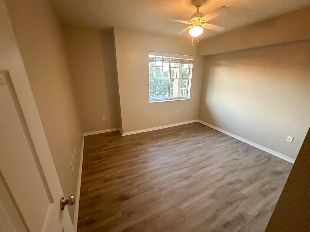 Brand new LVP flooring just installed in all bedrooms. NO CARPET AT ALL. Water and basic cable included. 1 car garage attached to the building. 3 bedrooms. Laundry in unit. Villas at Emerald Dunes is a gated community with excellent amenities. Kitchen has granite counters, light cabinets, backsplash, and stainless steel appliances. Full sized washer and dryer included in the unit. Nice balcony for relaxing. Impact windows is a huge plus. for energy efficiency and noise, plus no one is above you. Top-notch amenities like a resort-style pool, fitness center, and tennis courts.