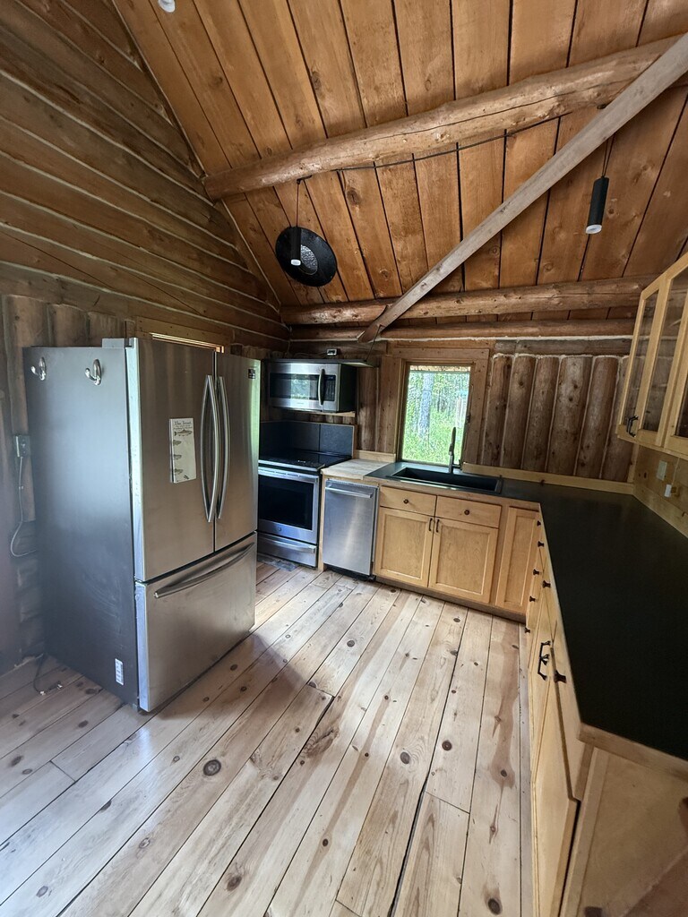 Gorgeous Alaska style studio cabin with a spacious loft space, can be furnished or unfurnished. Enjoy modern amenities and a short commute to both Palmer and Wasilla while still enjoying that Alaska vibe with all wood interior and 10 acres of gorgeous nature to enjoy! Boasts a modern washer/dryer combo unit, sleek stainless appliances (and a dishwasher!) two deck spaces to relax all summer and a cozy wood stove to stay warm all winter. Small dogs on approval, no cats. Tenant pays all utilities. Gorgeous Alaska style studio cabin with a spacious loft space, can be furnished or unfurnished. Enjoy modern amenities and a short commute to both Palmer and Wasilla while still enjoying that Alaska vibe with all wood interior and 10 acres of gorgeous nature to enjoy! Boasts a modern washer/dryer combo unit, sleek stainless appliances (and a dishwasher!) two deck spaces to relax all summer and a cozy wood stove to stay warm all winter. Small dogs on approval, no cats. Tenant pays all utilities.