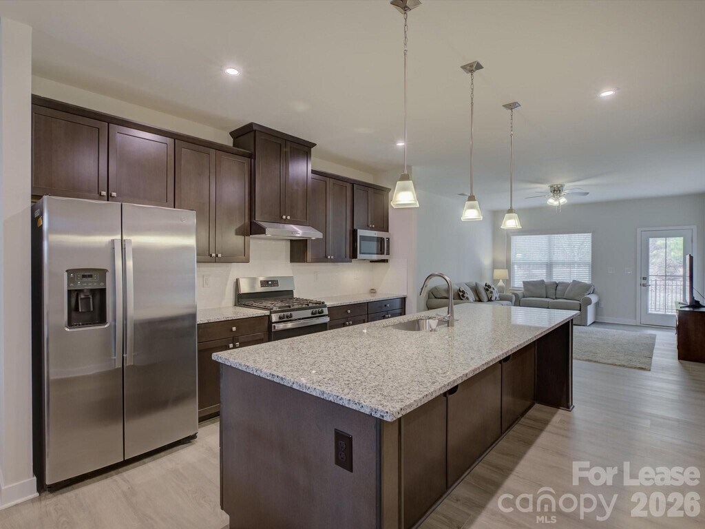 Welcome to exceptional comfort and style in the highly desirable Rivercross community! This immaculate two-story townhouse offers a thoughtfully designed layout,upscale finishes,and flexible living spaces perfect for today’s lifestyle. The beautifully appointed kitchen is the heart of the home,featuring granite countertops,a classic subway tile backsplash,a spacious island with additional seating and storage,gas range,and a generous walk-in pantry. Brushed nickel fixtures and sleek pendant lighting add a modern touch. The open-concept floor plan flows seamlessly from the kitchen to the dining area and into a separate living room with direct access to the covered back patio — an ideal space for relaxing evenings or entertaining guests. The fully fenced backyard with black aluminum fencing provides privacy and a secure outdoor retreat. The main-level primary suite is a true sanctuary,highlighted by a tray ceiling,spacious walk-in closet,and a luxurious en-suite bath complete with a walk-in shower and built-in bench. A convenient half bath and dedicated laundry room complete the first floor. Upstairs,you’ll find two additional bedrooms,a full bath,and an oversized walk-in storage room — perfect for guests,family members,or a home office setup. Residents of Rivercross enjoy outstanding community amenities,including a modern clubhouse with business office suites,a full kitchen,state-of-the-art fitness center,and a resort-style outdoor pool. With shopping,dining,and everyday conveniences just minutes away,this home offers the perfect blend of comfort,convenience,and community living. Don’t miss the opportunity to make this beautiful townhouse your next home! MLS ID CAR4350928