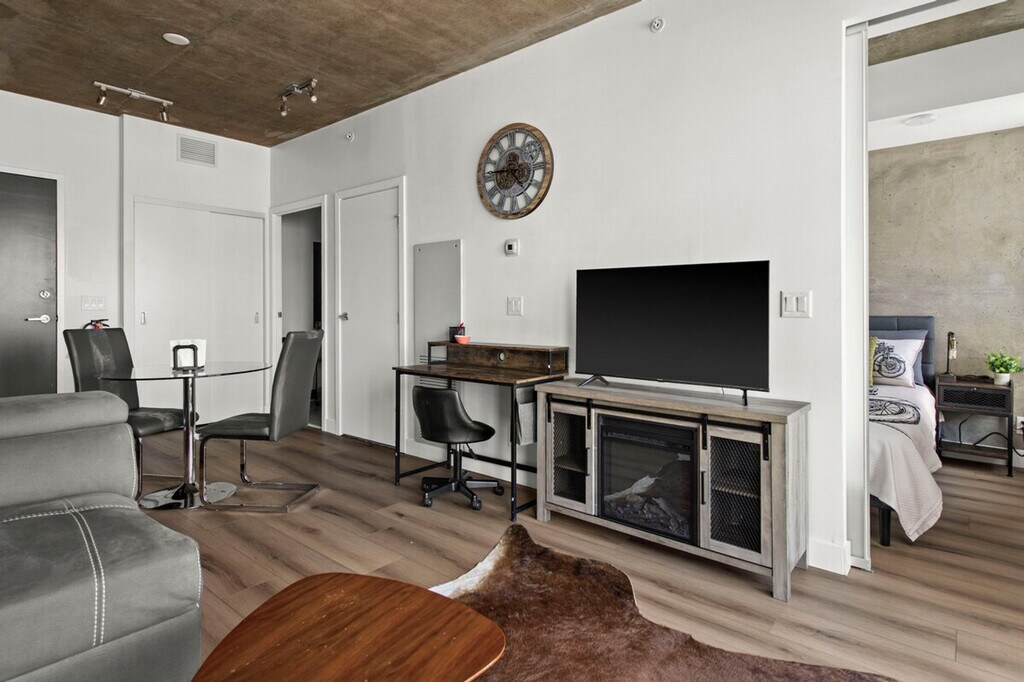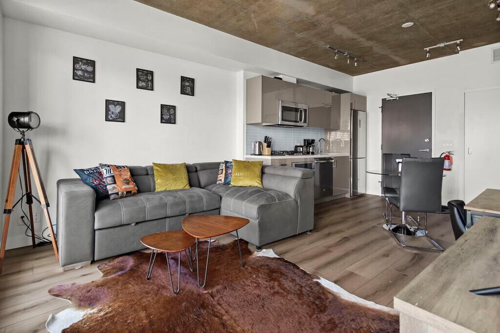 Feel at home in this chic 1-bedroom apartment in downtown Calgary. This contemporary, vibrant apartment, featuring a motorcycle enthusiast's design, comfortably accommodates up to four guests. This comfortable suite has everything you need to make you feel right at home, including a fully functional kitchen with tea, coffee, a kettle, coffeemaker, and toaster. Entertainment options include a Smart TV, Netflix and Wi-Fi. A washer and dryer with supplies are available for your convenience. The bathroom includes towels, shampoo, conditioner, body wash, a hair dryer and other toiletries. Paid outdoor parking is available right next to the building for $15 per night; no reservation is needed. Pets are allowed for stays of 28 nights or longer for CAD $10 per pet, per night. Top Calgary attractions are nearby, including Calgary Tower (8-minute walk), Stampede Park / Saddledome (12-minute walk), Stephen Avenue Walk (10-minute walk), 17th Avenue restaurants & bars (7-minute walk), Scotiabank Saddledome (14-minute walk), Calgary Zoo (8-minute drive), Peace Bridge (6-minute drive), TELUS Spark Science Centre (10-minute drive), and Calgary International Airport (20-minute drive). All guests must provide information, including each guest's name and ID details. Guests whose names or IDs do not match the information given are not allowed into the building. Smoking is strictly prohibited anywhere in the building. Registration Number: BL293994 [SI]