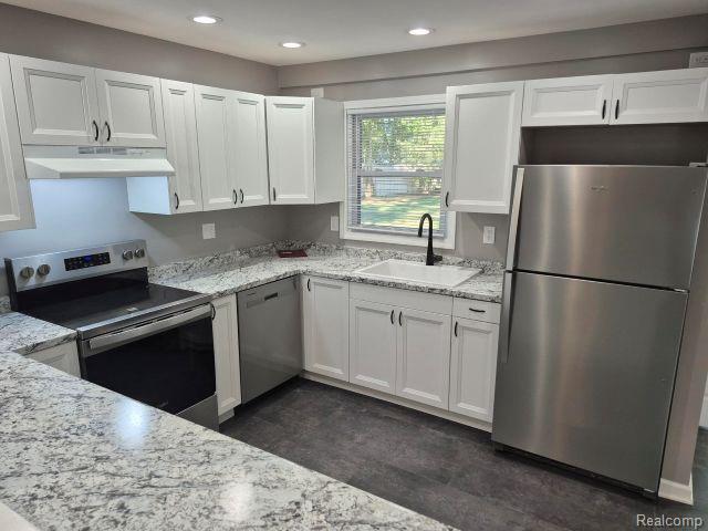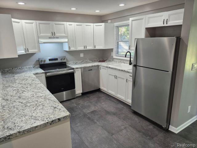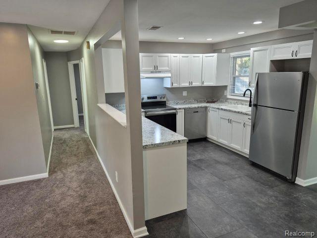 Sharp and clean ranch with updated bathroom and kitchen, canned lighting, some new painting and brand new flooring thru-out home, stainless steel kitchen appliances, dining room and small eat-in area off kitchen, good sized primary bedroom with plenty of closet space and built in dressers, screened in front porch to enjoy the outside with out all the bugs, brand new concrete patio with access from the garage and also sliding door off of dining room, stackable washer and dryer in home so no laundry mat trips, central air, updated vinyl siding and roof, large back yard with plenty of space, within walking distance to Clarkston Elementary and downtown Clarkston with easy access to I-75, tenant responsible for adding water softener salt, tenant pays for sewer bill, appliances included- stove-fridge-dishwasher-stackable washer and dryer, no smoking in home fridge in garage is for tenant use, one pet under 40lbs with a $500 pet fee, immediate occupancy. 1 month rent. 1.5 month security deposit. $200 cleaning fee. $50 application fee. renter’s insurance required.