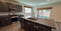 Anna KitrasBeautiful 4 Bedroom Home in Gated Community Downstairs Bedroom + Full Bath! Welcome to this stunning and spacious home located in a quiet cul-de-sac near the VA Hospital, Nellis AFB, shopping, dining, and freeway access. No neighbors behind. This open-concept floor plan features hardwood laminate plank flooring, a downstairs bedroom with full bath, and builder-selected upgrades throughout. The chef s kitchen opens to the living area perfect for entertaining. Upstairs offers a huge loft, large secondary bedrooms, and a luxurious primary suite with a massive walk-in closet, soaking tub, and glass-enclosed shower. Enjoy the fully finished backyard with a covered patio, no rear neighbors, and two gated side yards ideal for dog runs. Water system included. This home has it all comfort, convenience, and privacy in a beautifully maintained gated community!