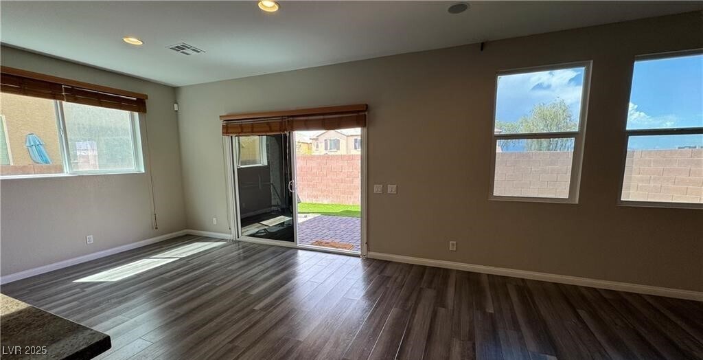 Beautiful 4 Bedroom Home in Gated Community – Downstairs Bedroom + Full Bath! Welcome to this stunning and spacious home located in a quiet cul-de-sac near the VA Hospital, Nellis AFB, shopping, dining, and freeway access. No neighbors behind. This open-concept floor plan features hardwood laminate plank flooring, a downstairs bedroom with full bath, and builder-selected upgrades throughout. The chef’s kitchen opens to the living area—perfect for entertaining. Upstairs offers a huge loft, large secondary bedrooms, and a luxurious primary suite with a massive walk-in closet, soaking tub, and glass-enclosed shower. Enjoy the fully finished backyard with a covered patio, no rear neighbors, and two gated side yards ideal for dog runs. Water system included. This home has it all—comfort, convenience, and privacy in a beautifully maintained gated community!