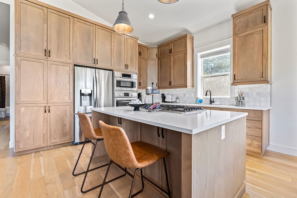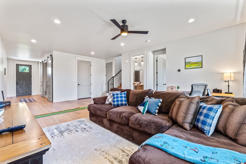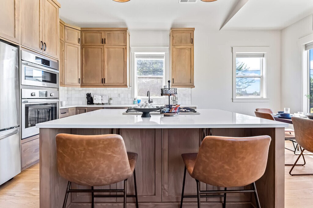 Feel at home in this brand-new 3-bedroom, 3-bath home in Boise, backing onto the picturesque Pierce Park Greens golf course. This home features a fully stocked kitchen, a master suite with a king-size bed and en-suite bath, plus two queen rooms. Enjoy serene green views from every window and access to this nine-hole par-3 course just steps from your door. Parking is available for a maximum of 2 vehicles, with room for 1 in the garage and 1 on the street. Do not block garages or the small street; park only where designated. Guests are required to digitally agree to and sign house rules and a rental agreement, which will be emailed once booking is received.