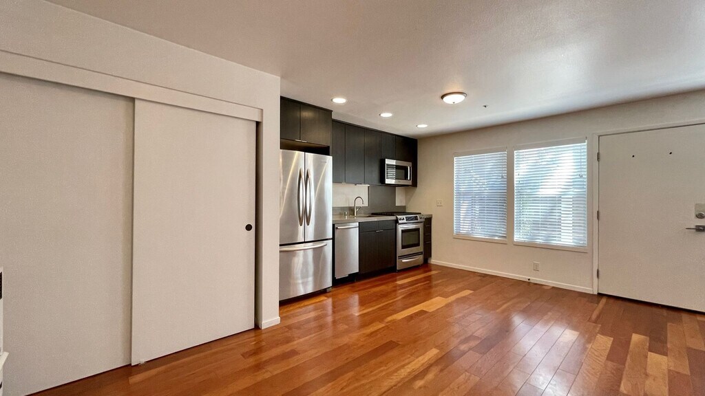 This spacious studio, located on the ground level is located about 1 mile to downtown SLO and 1.5 miles to Cal Poly campus. There is a lovely front yard fenced patio shaded by a large tree and pergola over the entrance. The interior has a modern updated look with hardwood floors throughout. The bathroom has a sleek design with a floating vanity and an oversized shower. The kitchen offers newer cabinets, quartz counters, full-size refrigerator and gas range, a microwave and a dishwasher. Washer and dryer hookups inside the unit. There is one dedicated off-street parking space in the parking lot and trash included. Professionally managed by Link Real Estate Group, Inc. Lic#02180351 Please inquire by email only to