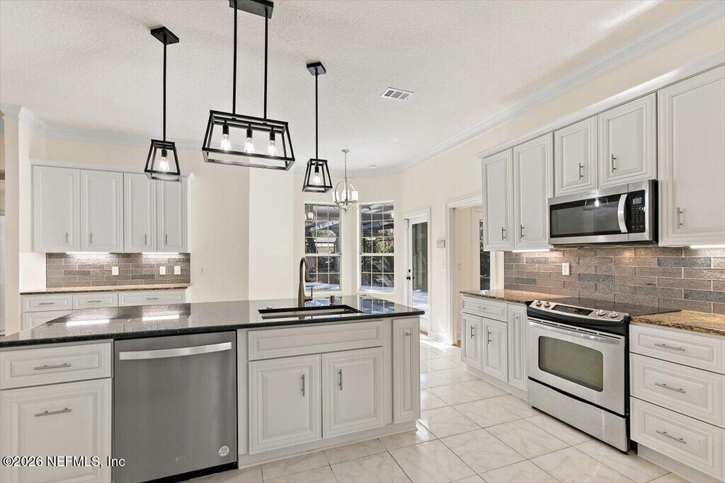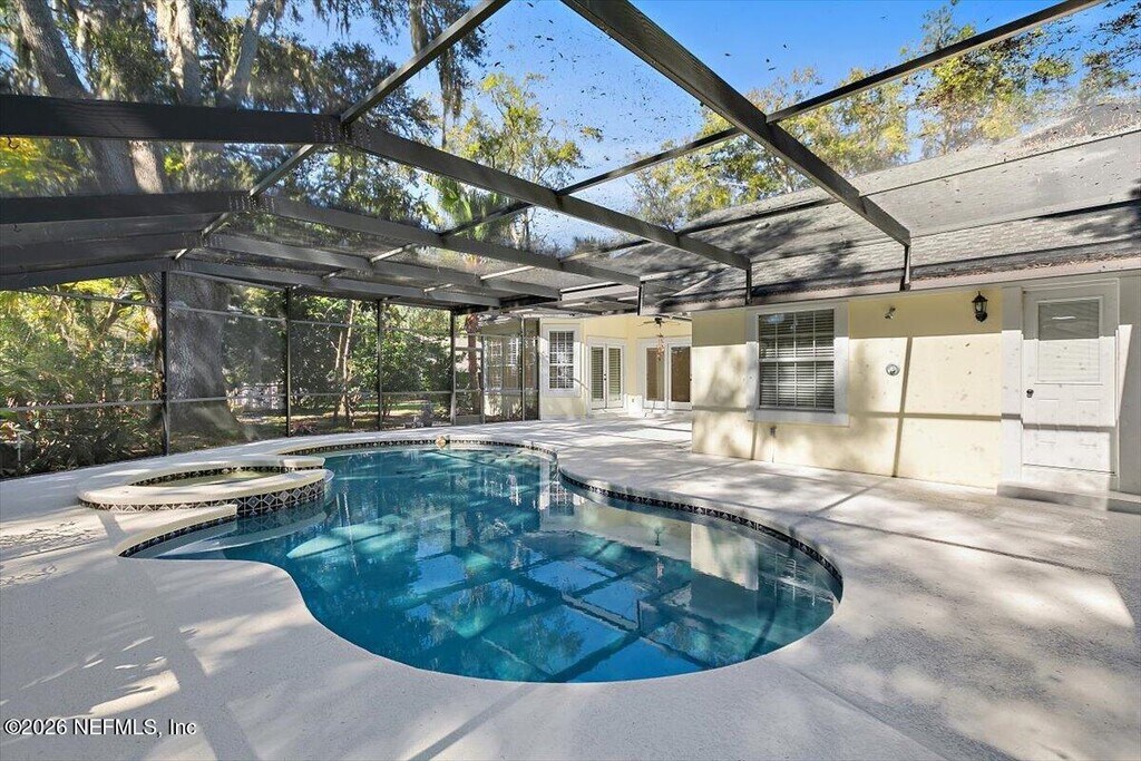 Introducing an exceptional opportunity in the stunning community of Queens Harbour! This beautifully designed 4-bedroom residence boasts a spacious open floor plan that's perfect for both entertaining and everyday living. The chef's kitchen is a highlight,featuring a large island and granite countertops,seamlessly connecting to the family room which is adorned with a cozy wood-burning fireplace. The expansive master suite is a true retreat,complete with his and hers walk-in closets and a generous master bathroom. Take advantage of the extra-large lanai and inviting pool/spa area,ideal for relaxing and hosting gatherings in your own private oasis. You'll appreciate the convenience of being located near the main gate entrance,with a side-entry garage and a circular driveway for easy access. Enjoy worry-free living with pool maintenance and lawn care included! Residents also have access to a wealth of association amenities such as tennis courts,swimming pools,and more! MLS# 2128003
