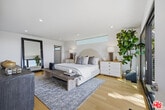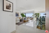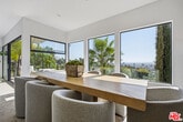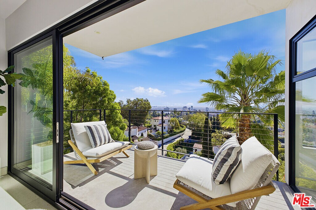 Commanding panoramic views from its coveted Hollywood Hills setting, this striking contemporary residence delivers elevated design and effortless indoor-outdoor living. Walls of glass invite an abundance of natural light, while multiple decks create seamless transitions from refined interiors to sweeping city vistas. The open-concept main level is designed for both everyday living and sophisticated entertaining, anchored by sleek Caesarstone flooring and a chef-caliber kitchen appointed with premium Miele appliances, Italian cabinetry, Hansgrohe fixtures, and sculptural Artemide lighting. Every finish reflects a commitment to modern luxury and thoughtful craftsmanship. The primary suite serves as a private retreat, with a generous walk-in closet and spa-inspired bath featuring a deep-soaking Corian tub and separate rainfall shower. Three additional bedrooms offer substantial scale, warm white oak floors, custom built-ins, and a dedicated laundry room. An integrated smart home system enhances comfort and security, including surveillance cameras, Nest climate control, and EV charger readiness. Privately positioned on a tranquil street, this Hollywood Hills residence pairs contemporary sophistication with the ultimate Southern California lifestyle. MLS# 26652317