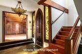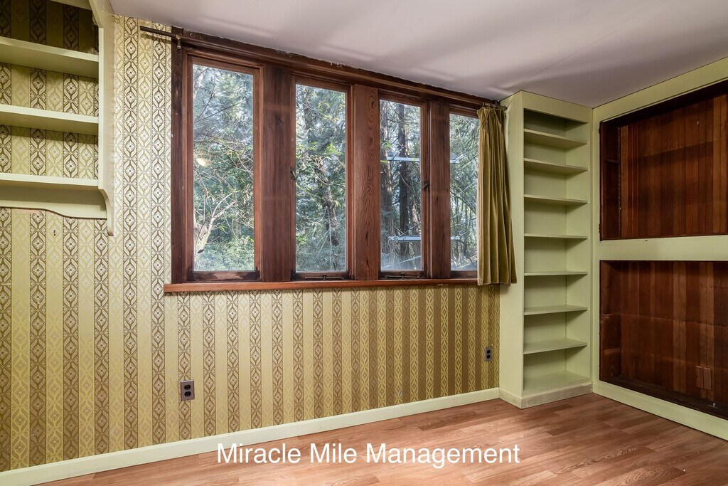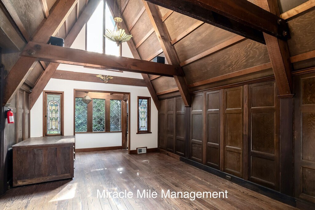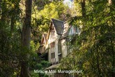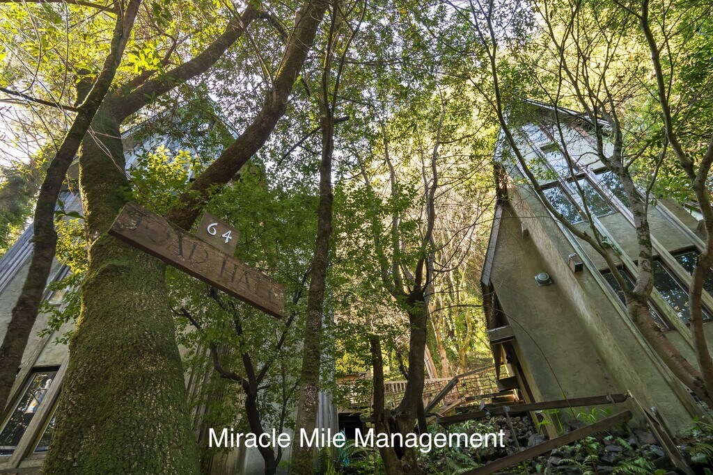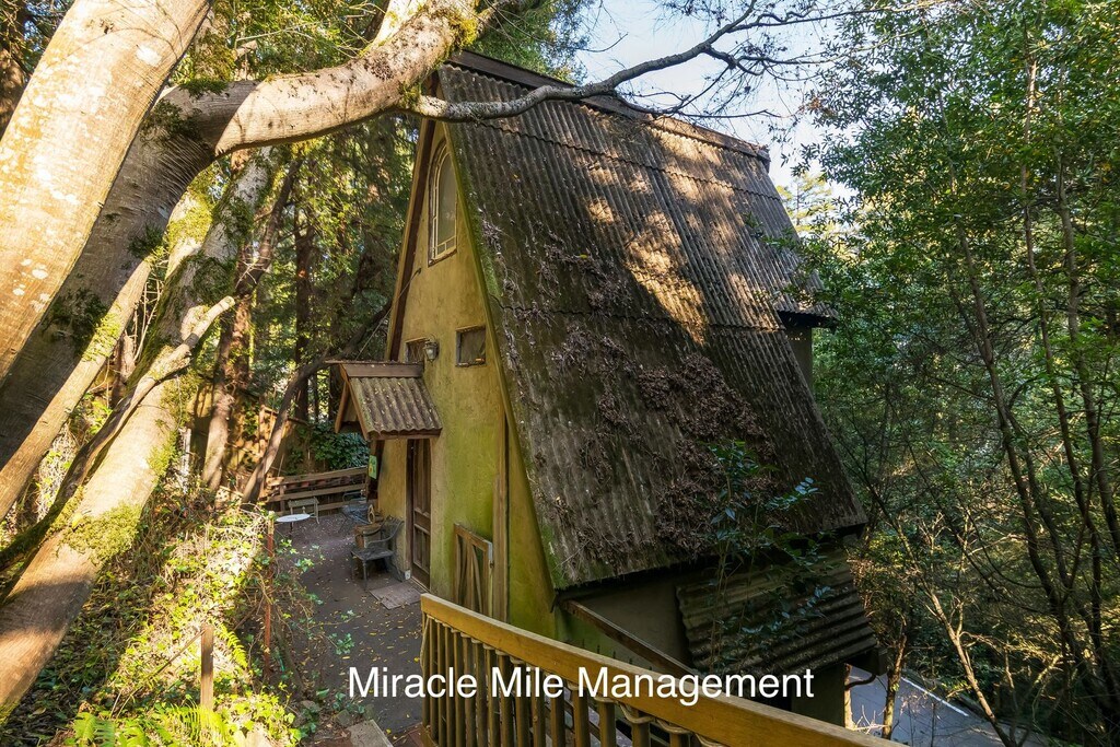 Nicknamed “Toad Hall,” this one-of-a-kind Gothic Tudor style home sits at the base of Mount Tamalpais, surrounded by towering redwoods, bay trees, and seasonal creeks, with easy access to nearby trails, Muir Woods, and all the outdoor recreation that makes this area so sought after. Located in the heart of Mill Valley, one of Marin County’s most desirable communities, the property offers a rare combination of privacy, charm, and proximity nature. The main house offers three bedrooms and three baths. Two bedrooms are located on the lower level. One features walls covered in vintage maps and painted suits of armor. The other is wrapped in warm redwood paneling. The primary bedroom occupies the top floor and feels like a private retreat, with soft peach walls, ceiling height windows, a custom wallpapered bath, and its own rooftop balcony. The expansive living room showcases dramatic 25 foot vaulted ceilings, a sunroom, and a custom mantel flanked by two carved lions guarding a wood burning fireplace. The kitchen is equipped with a six burner gas stove, double oven, and a new refrigerator. A rare bonus is the fully detached standalone cottage, complete with its own bedroom, kitchenette, and bathroom. It’s ideal for a private home office, guest quarters, creative studio, or extended family living space. Storage is abundant throughout the home, including hidden spaces beneath the stairs, built ins within the walls, and oversized closets. Parking is generous, with a large open garage, a spacious driveway, and one reserved street space. Lease terms: • Twelve month lease • Non smoking property • Owner will consider a small to medium sized dog with additional deposit and breed approval • No cats • Renter’s insurance required A truly distinctive property offering character, privacy, and flexible living space in a peaceful wooded setting.