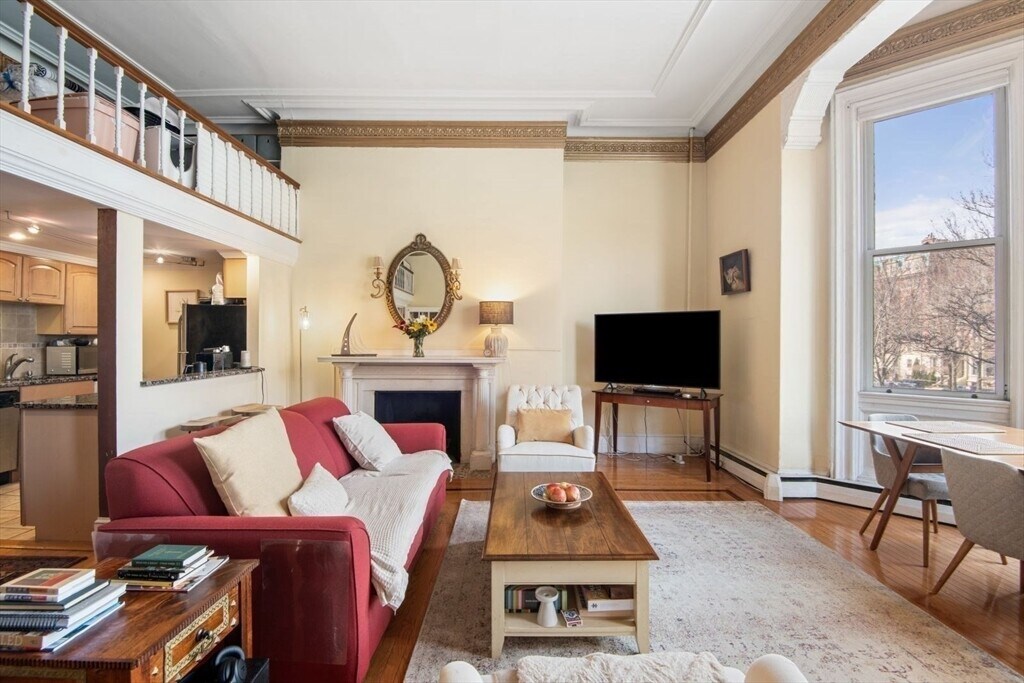 Stunning one bedroom with an additional loft located in the Prestigious Back Bay area. This front facing unit offers a magnificent view of the Commonwealth Avenue Mall tree line. Situated on the second floor mostly furnished,can be negotiable,offering open layout,enter living/dining room,French doors leading to the bedroom,hardwood floor throughout,stainless appliances kitchen,cabinets,granite countertop,breakfast bar,decorative fireplace,high ceilings,oversized windows providing abundance light into the entire unit. The heat and one tandem parking space included in the rent. Located with close proximity to shopping,dining in distinguished restaurants in Bay Bay,Copley Square and the Esplanade along the Charles River. MLS# 73494165