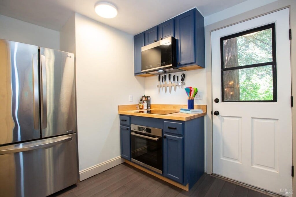 654 Square Foot remodeled two bedroom one bath cottage nestled in the Redwoods Electric range, d/d refridge, micro-wave, dishwasher, full size stackable washer and dryer, and mini-split electric heating and air, car charger. Tucked beneath a canopy of majestic redwoods, this beautifully remodeled two-bedroom, one-bath cottage offers the perfect blend of modern comfort and natural serenity. The open-concept living and dining area is filled with natural light from oversized windows and features wood laminate flooring throughout. The updated kitchen includes a garden window, butcher block counters, ample cabinet space, electric range, dishwasher, microwave, and a d/d refrigerator. A full-size stackable washer and dryer are conveniently located in the updated bathroom. Year-round comfort is ensured with a mini-split electric heating and air system. Enjoy peaceful mornings on the covered front porch or unwind on the open back deck overlooking a wooded hillside and seasonal creek. EV drivers will appreciate the on-site car charger. Ideally located near the Sonoma Zipline Adventures and just minutes from historic downtown Occidental, with an easy drive to Sebastopol’s shops and restaurants. This unique home offers the perfect retreat for nature lovers who don’t want to sacrifice modern amenities. {Small dog considered} Available 09/15-We answer inquiries M-F from 9-5 Note: This property is being rented unfurnished Rental price includes: No utilities Please do not disturb the current occupant. DRE #01173800