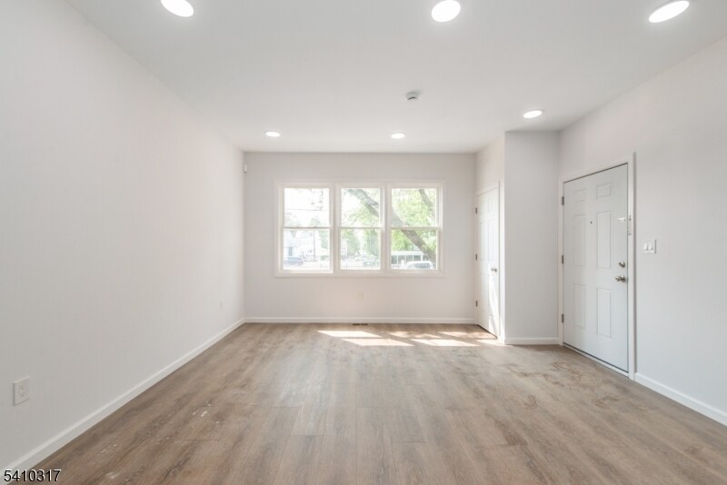 Welcome to 64 Grace Street, a thoughtfully designed apartment offering modern finishes, privacy, and convenience without the feel of a large apartment building. This spacious approximately 1,000 sq. ft. 2-bedroom, 2-bath residence is ideal for those seeking a well-kept, turnkey home. The apartment is accessed via a short flight of steps from the sidewalk, providing a sense of separation and quiet while offering first-level living once inside. The open-concept layout creates a natural flow between living, dining, and kitchen spaces, making the home both functional and inviting. Features include luxury vinyl plank flooring throughout, central air conditioning, and forced hot air heat for year-round comfort. The kitchen is well appointed with Samsung stainless steel appliances, quartz countertops, soft-close shaker cabinetry, and a designer tile backsplash. Laundry hookups are available (washer and dryer not included). The primary bedroom includes a private full bath, while the second bedroom offers flexibility for guests or a home office. On-street parking is available. Pets may be considered with restrictions. Conveniently located just a few blocks from the Irvington Bus Terminal and close to the Garden State Parkway, NJ Turnpike, and Route 78, with easy access to Newark, Jersey City, and Manhattan. Nearby dining, shopping, Downtown Newark, Maplewood, and Irvington Park with walking paths and recreation are all close by.