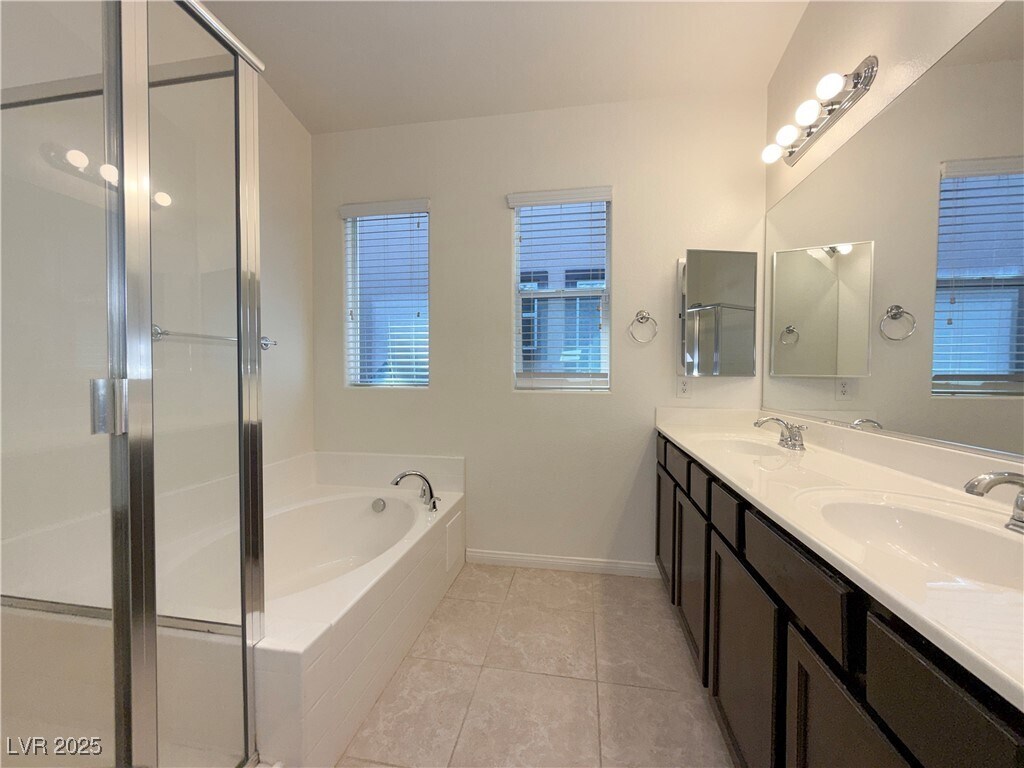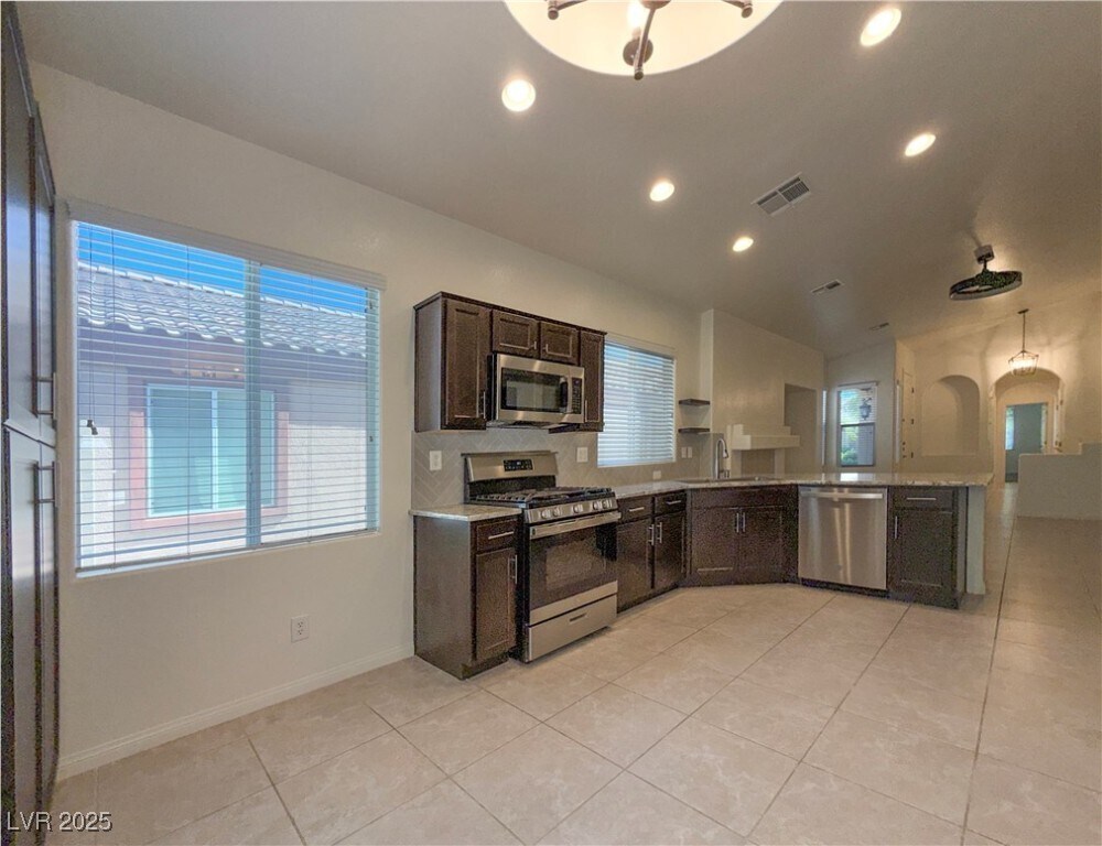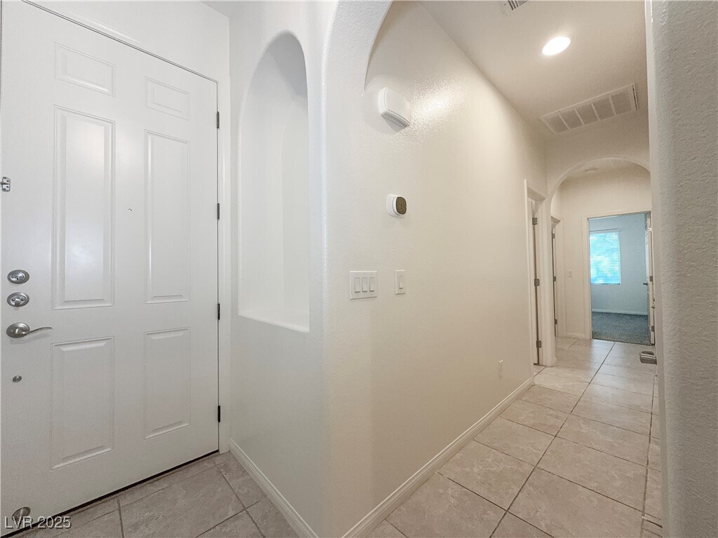 Discover this rare single-story gem nestled in the prestigious guard-gated Rhodes Ranch community. This stunning home features vaulted ceilings, elegant architectural details, and an open, airy floor plan perfect for modern living. Equipped with a water softener, freshly painted interiors, and a brand-new A/C unit, this home combines comfort and convenience. The spacious primary suite is thoughtfully separated for privacy, complemented by nicely sized secondary bedrooms and a beautifully designed interior throughout. Move-in ready and meticulously maintained, this residence offers both comfort and style in one of the most desirable neighborhoods in Las Vegas.*Monthly Base Rent: $ 2,100; Sewer $25; Trash $21; Total Monthly rent $2,146*