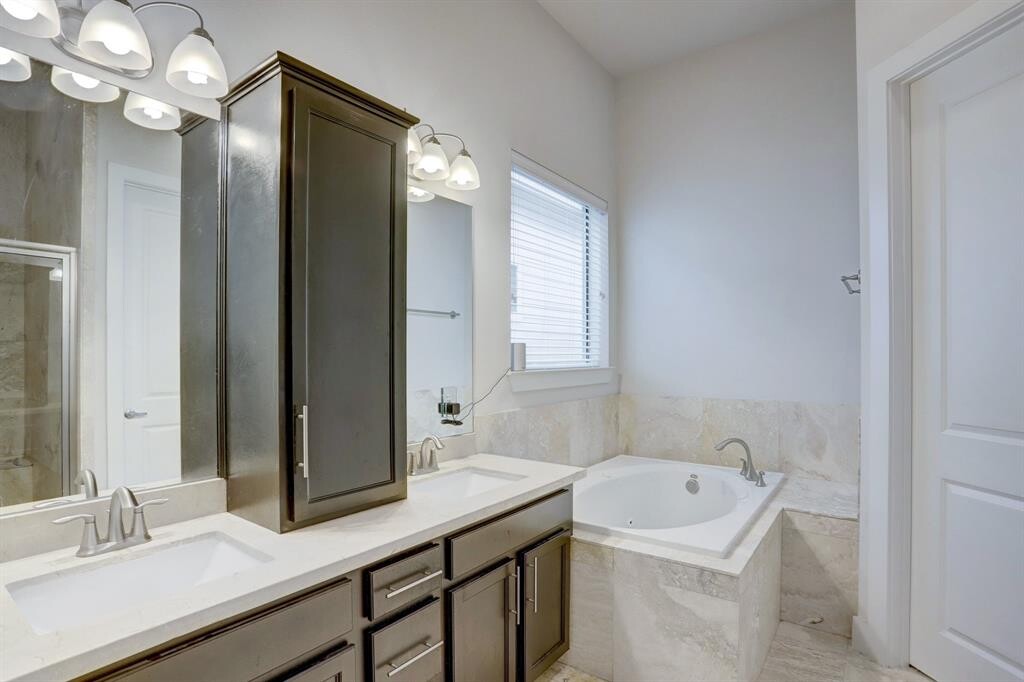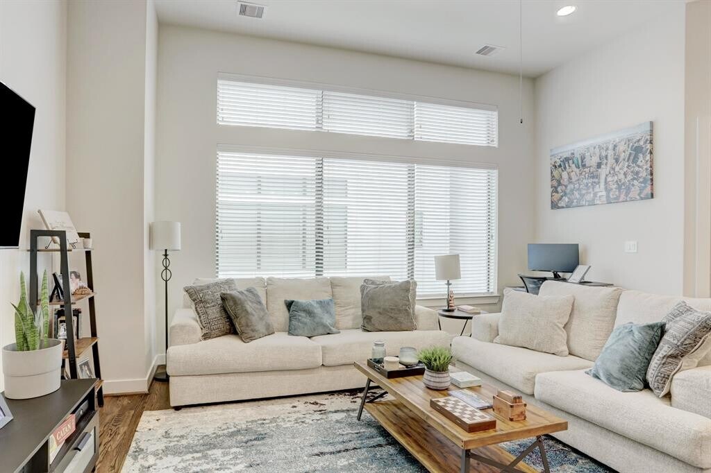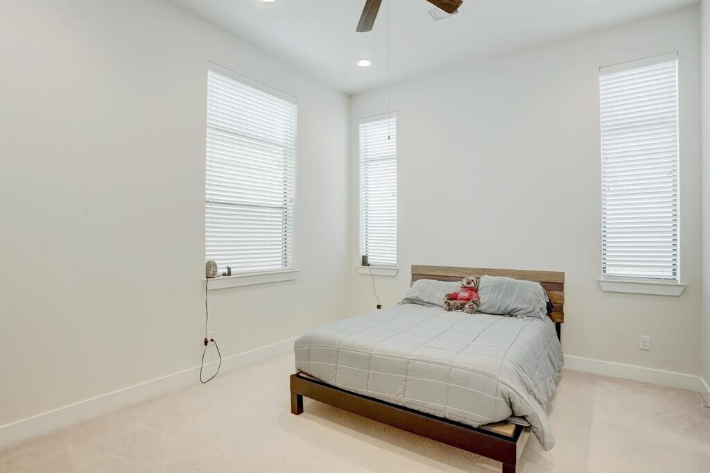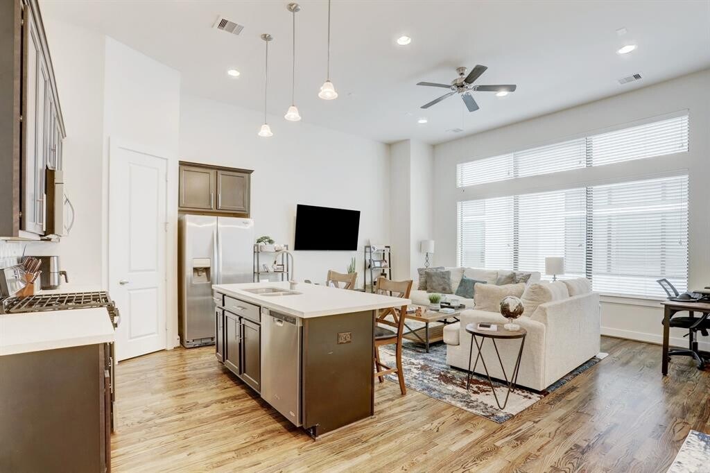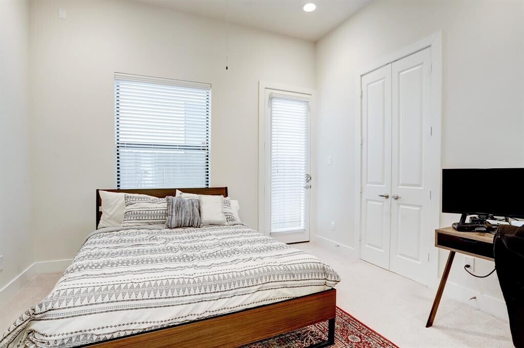 MOVE-IN READY DECEMBER 3, 2025. Convenient to everything! Immaculate condition. Two-story home in a gated community. Filled w/sunlight and 14ft ceilings, this open floor plan with 2 bedrooms, 2.5 bath, and 2 car garage is located in the heart of EaDo and includes two primary suites on both floors, making it an ideal choice for two roommates. Both bathrooms have large walk-in showers, luxurious en suite soaking tub, and XL walk-in closets. Private backyard, beautiful finishes in the kitchen w/large breakfast bar/island & quartz countertops, including stainless steel appliances, and travertine and hardwood floors throughout the home. Utility room comes with a stacked washer and dryer. Easy access to major highways I-10, 59/69 and I-45 and mere blocks away from Downtown Houston, rail station, bike trails. Walkable to Canal Street. Come see this beautiful home and enjoy living in a small and quiet community!