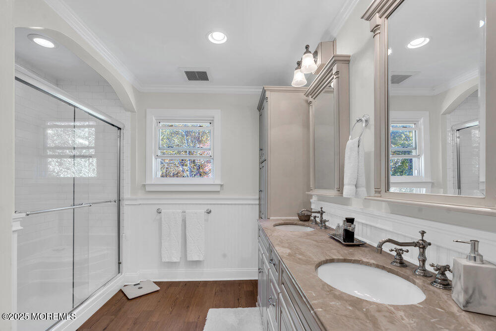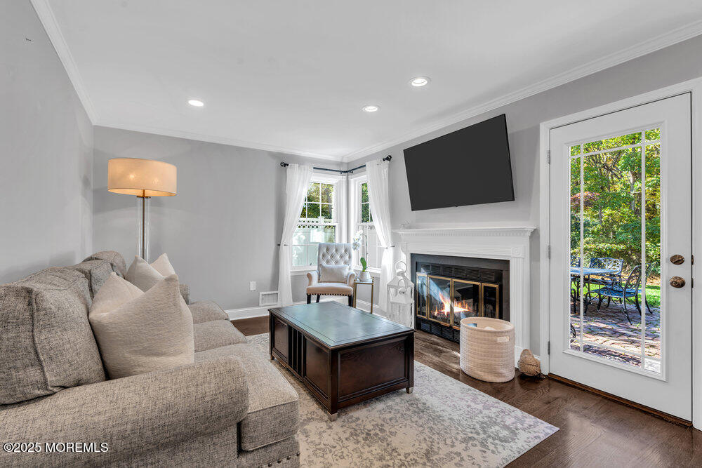 Impeccable 3-bedroom + den,2.5-bath home for rent in the highly desirable Society Hill community. This home boasts a bright,modern interior with gleaming hardwood floors throughout. The open living and dining areas flow seamlessly into a stylish kitchen and a cozy family room that opens to a serene,private wooded backyard,complete with a built-in grill and storage shed. Upstairs,you'll find three spacious bedrooms plus a versatile den,ideal for a home office or study. Enjoy access to community amenities including a pool,tennis courts,and clubhouse. Conveniently located near the new Netflix studio,RWJ Barnabas,Life Time,Ranney School,Trinity Hall,Downtown Red Bank,beautiful beaches,shopping,transportation to NYC,and the GSP. Available 12/15/25.