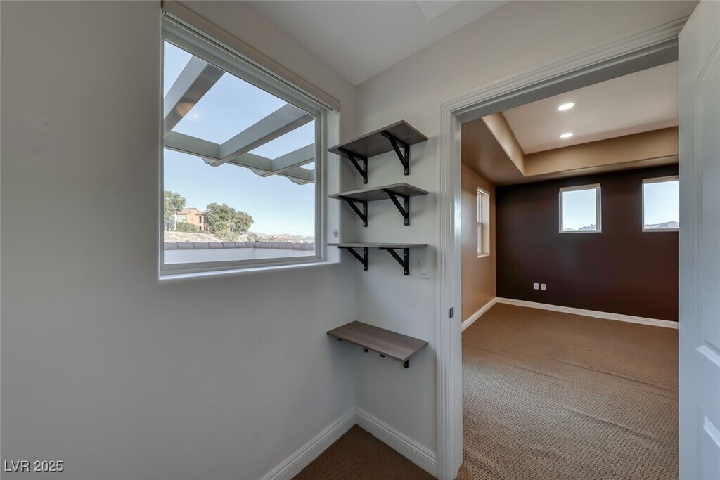 Breathtaking lake, golf course, & mountain views welcome you to this stunning corner condo in the gated Villa di Lago community at Lake Las Vegas. This spacious condo offers 3 bedrooms, each w/ its own full bathroom, plus 1 powder room, w/ an open-concept layout featuring tray ceilings, recessed lighting, & abundant natural light. The kitchen includes rich dark wood cabinetry, granite countertops, a large island w/ sink, mosaic tile backsplash, & all-electric stainless steel appliances, including a built-in wall oven & microwave. Tile flooring flows through the main living areas w/ laminate & carpet in the bedrooms. A spacious family room opens to 1 of 2 private balconies, while the primary suite offers its own balcony, walk in closet, & spa-style bath. Community amenities include gated entry, assigned indoor parking, guest parking, storage & security. Tenant responsible for electricity only. Enjoy the Lake Las Vegas lifestyle w/ a 320-acre lake, water sports, dining, events & more