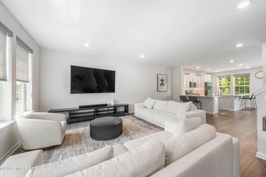 Welcome home to this stunning end-unit townhouse built in 2024 and stylishly updated in 2025! Inside you'll discover a bright and airy layout designed for modern living. The lower level features a spacious family room that opens directly to the backyard. Upstairs,the main living area offers an open-concept flow between the living room,dining room,and kitchen. You'll love the bright cabinetry,gleaming countertops,and dual seating options at both the center island and peninsula ready for your morning coffee or casual dinners. The kitchen opens to a 10x10 deck for easy entertaining. Large windows and glass sliders flood the space with natural light and lead to the outdoor deck overlooking tranquil greenery.